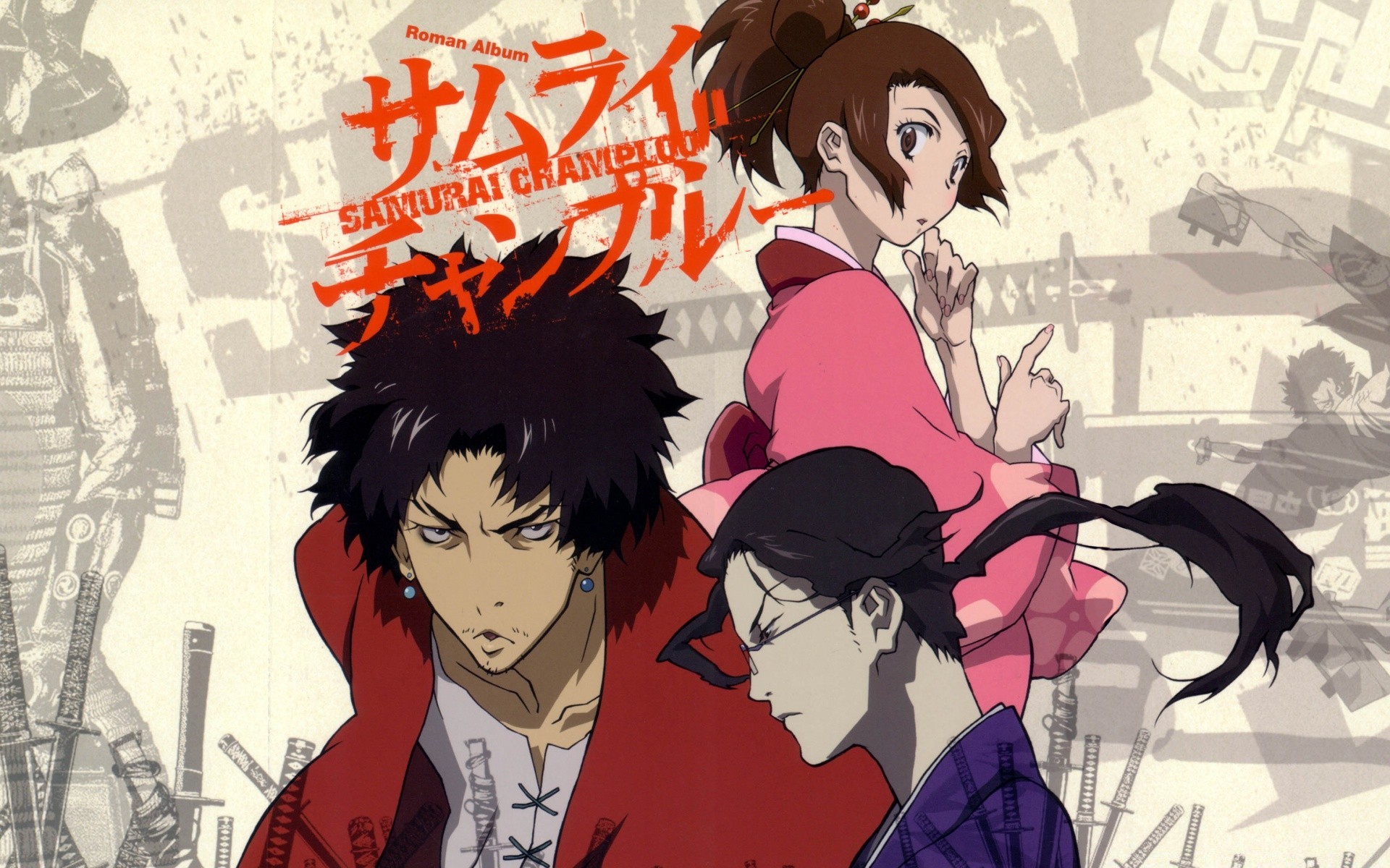 Tres samuráis japoneses pintados