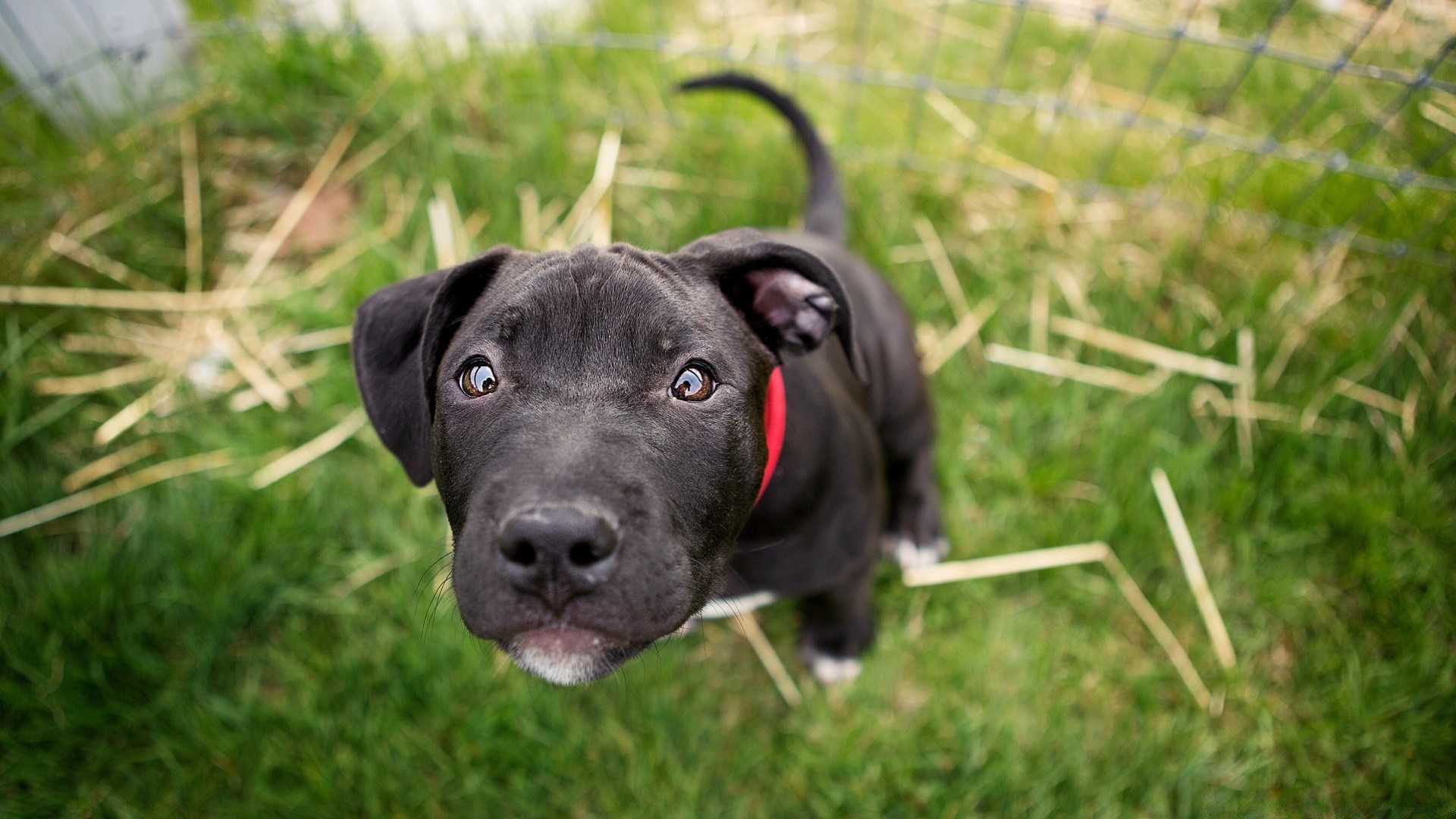 Divertido perro dibujado en un collar sobre un fondo verdeDivertido perro dibujado en un collar sobre un fondo verde
