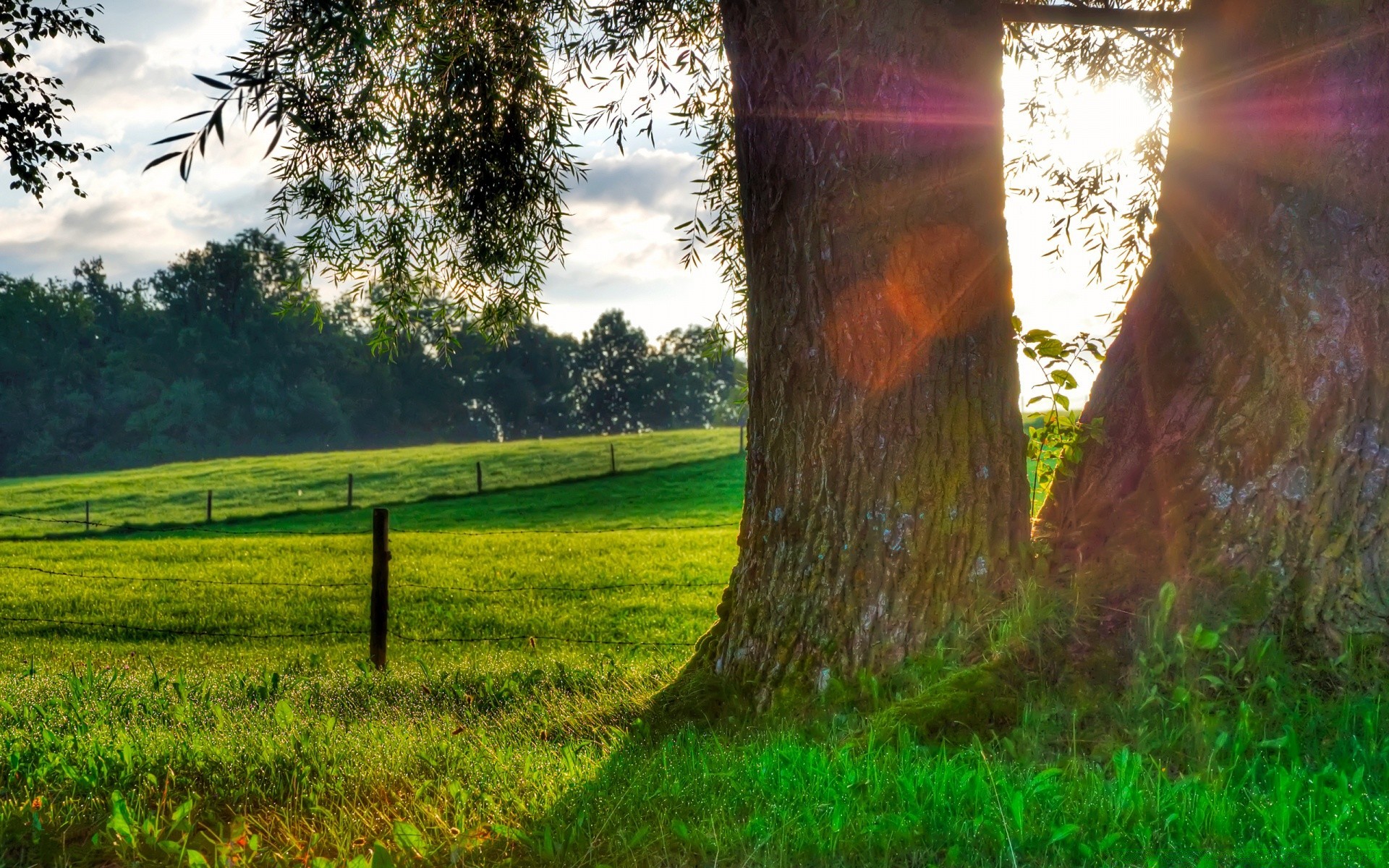 Dos árboles en la naturaleza y el sol