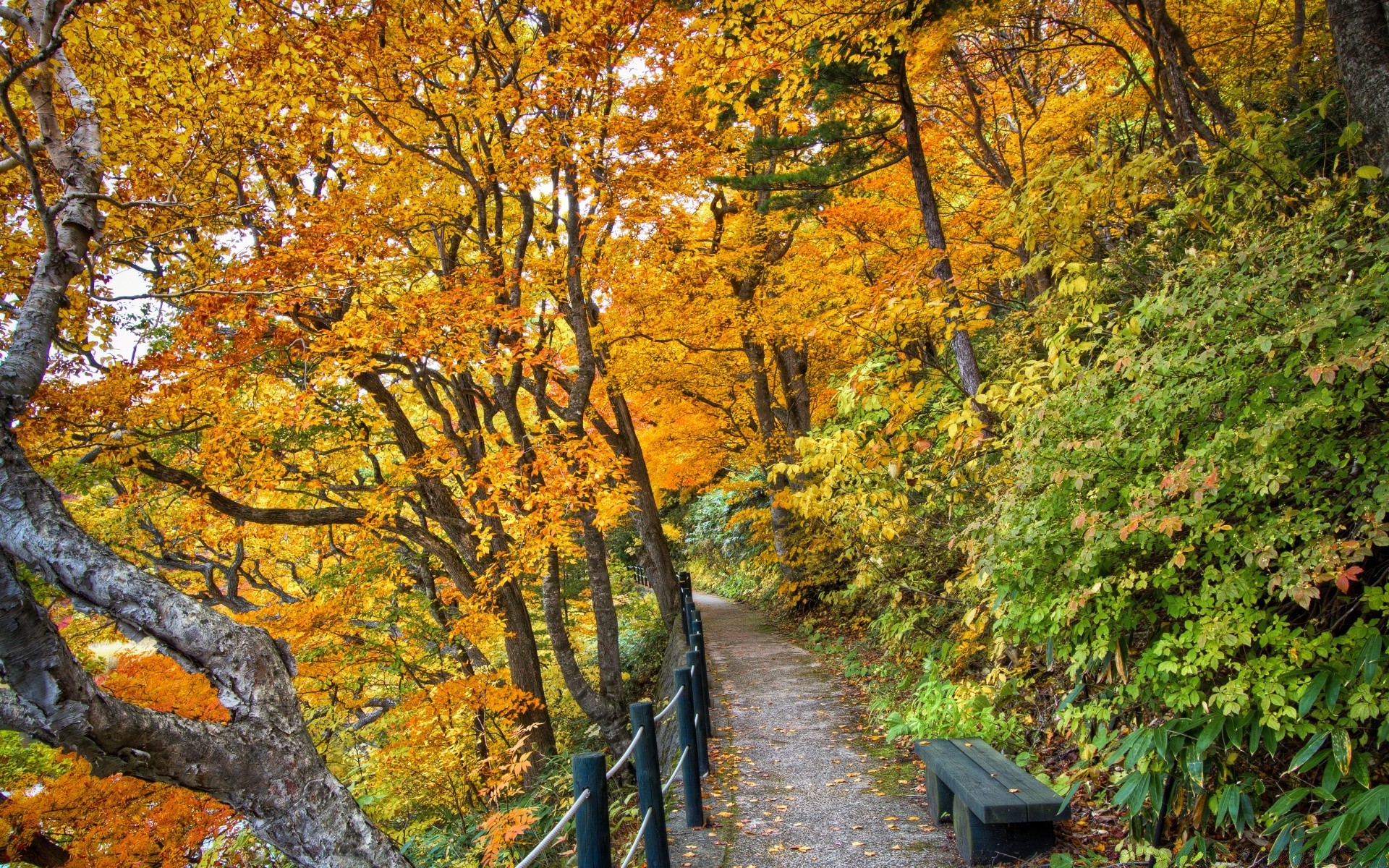 Bosque de otoño. árboles en otoño. follaje en el caminoBosque de otoño. Árboles en otoño. Follaje en el camino