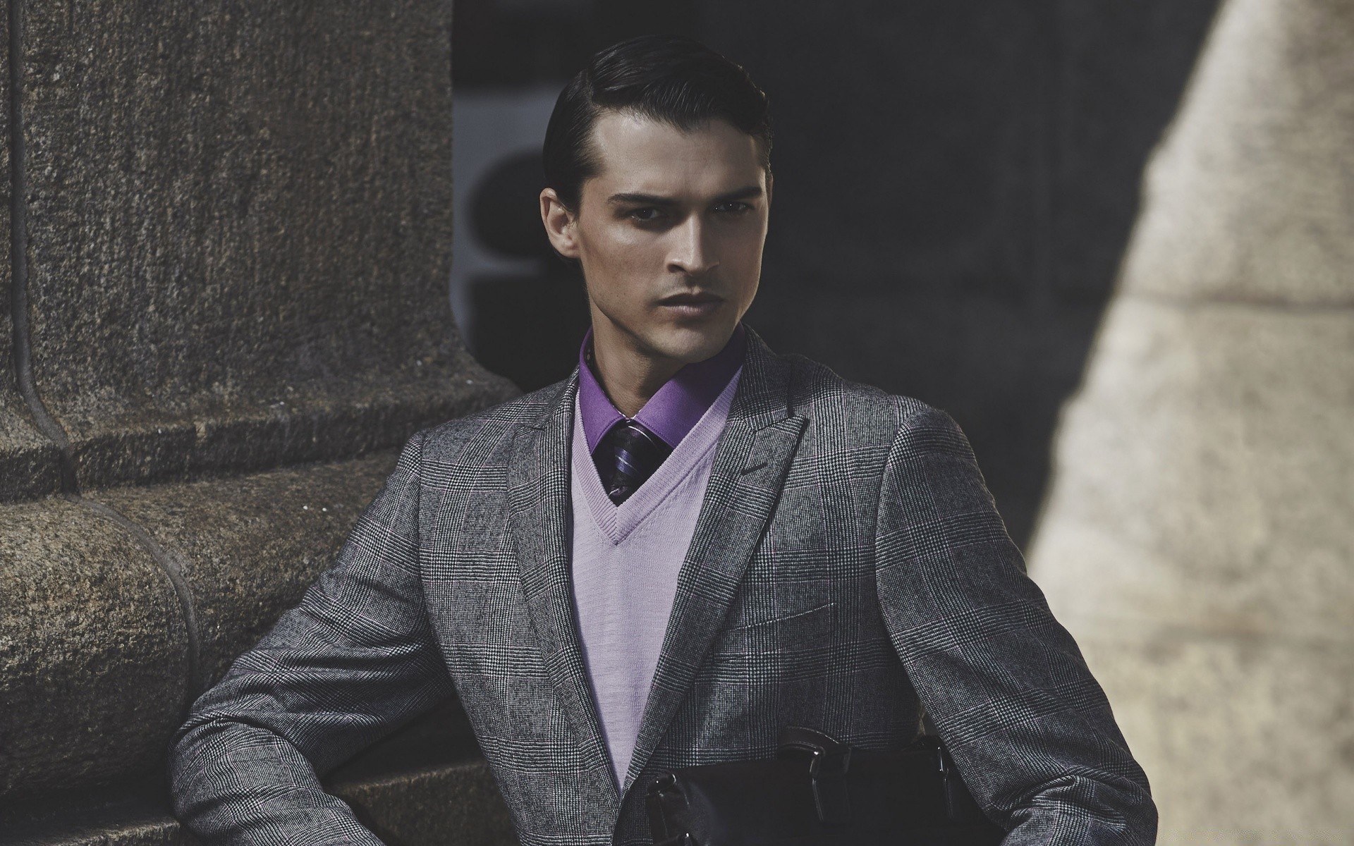 Un hombre elegante contra una pared gris