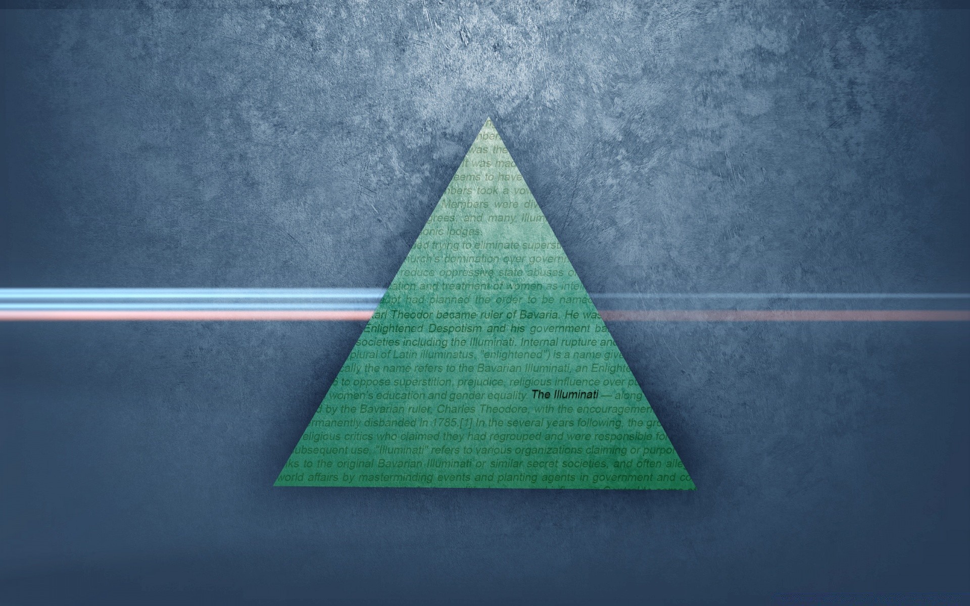 Triángulo con inscripciones en el interior sobre un fondo gris-azul con una franja en el horizonte