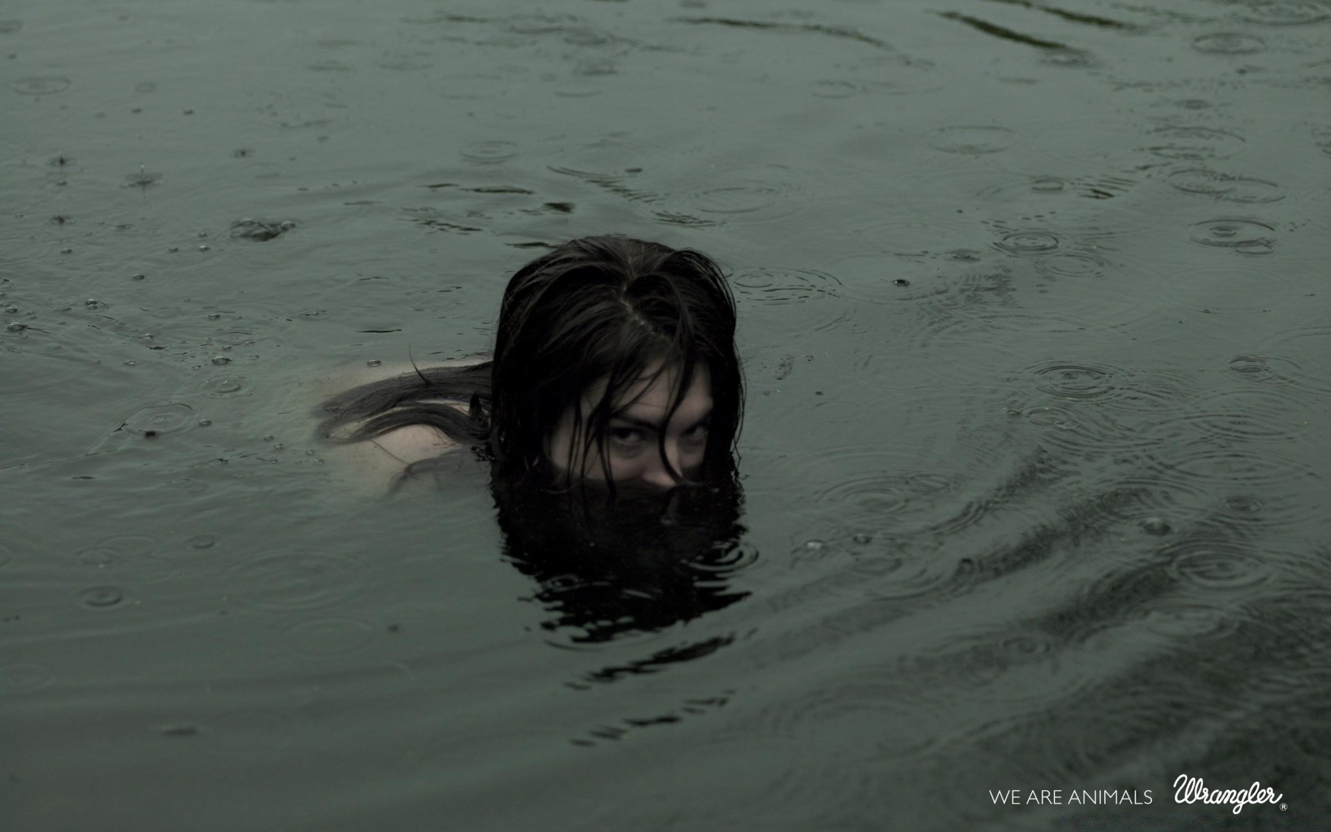 Una chica en el agua con un vestido blanco. Jeroglíficos. Carácter soñador