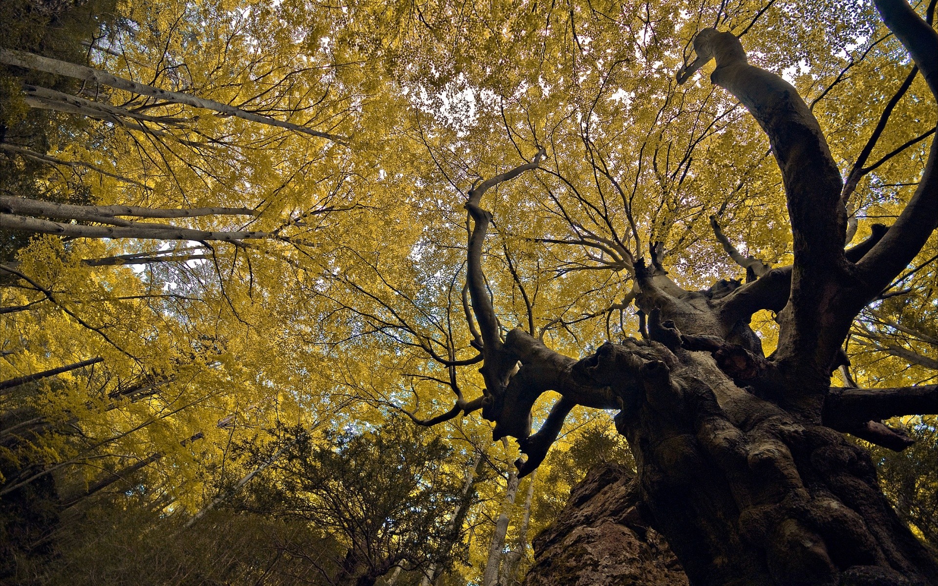 Asfalto cubierto de hojas de colores en el bosque de otoño