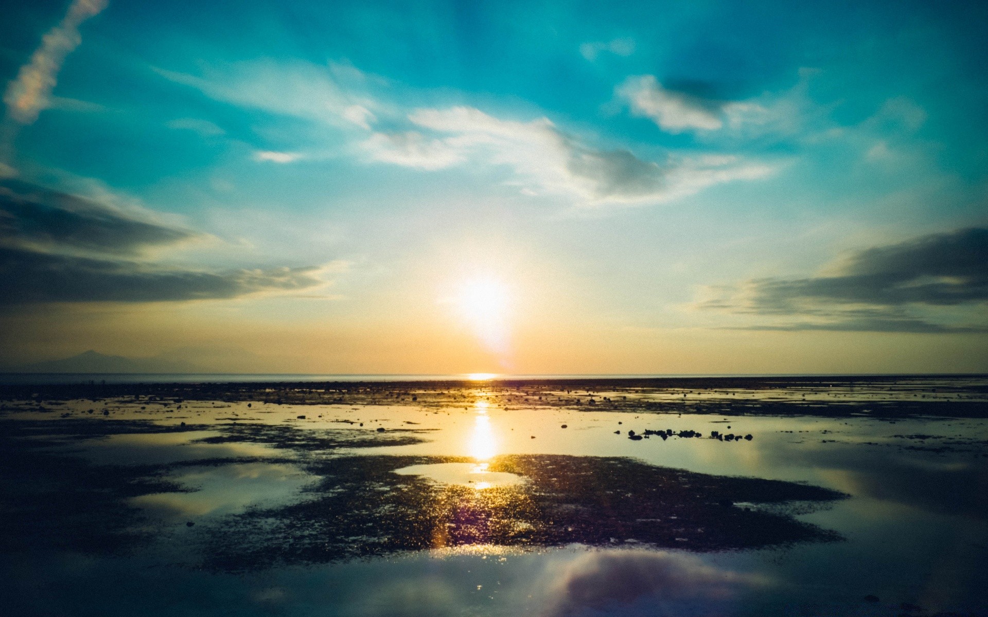 Una puesta de sol en la playa después de la cual vendrá el atardecer