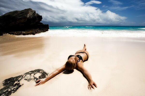 Hermosa chica en la costa azul