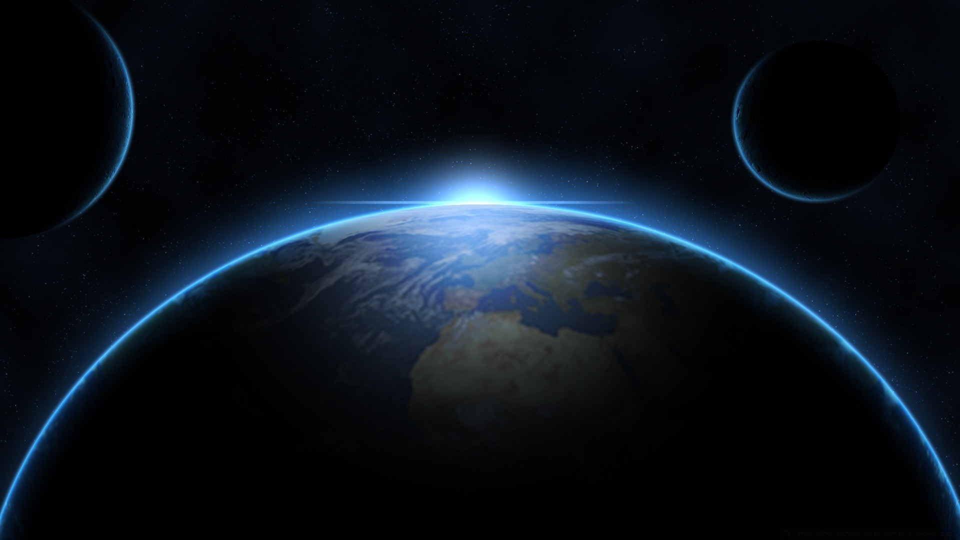 Fantasía. Amanecer. Montaña. Esfera en el cielo
