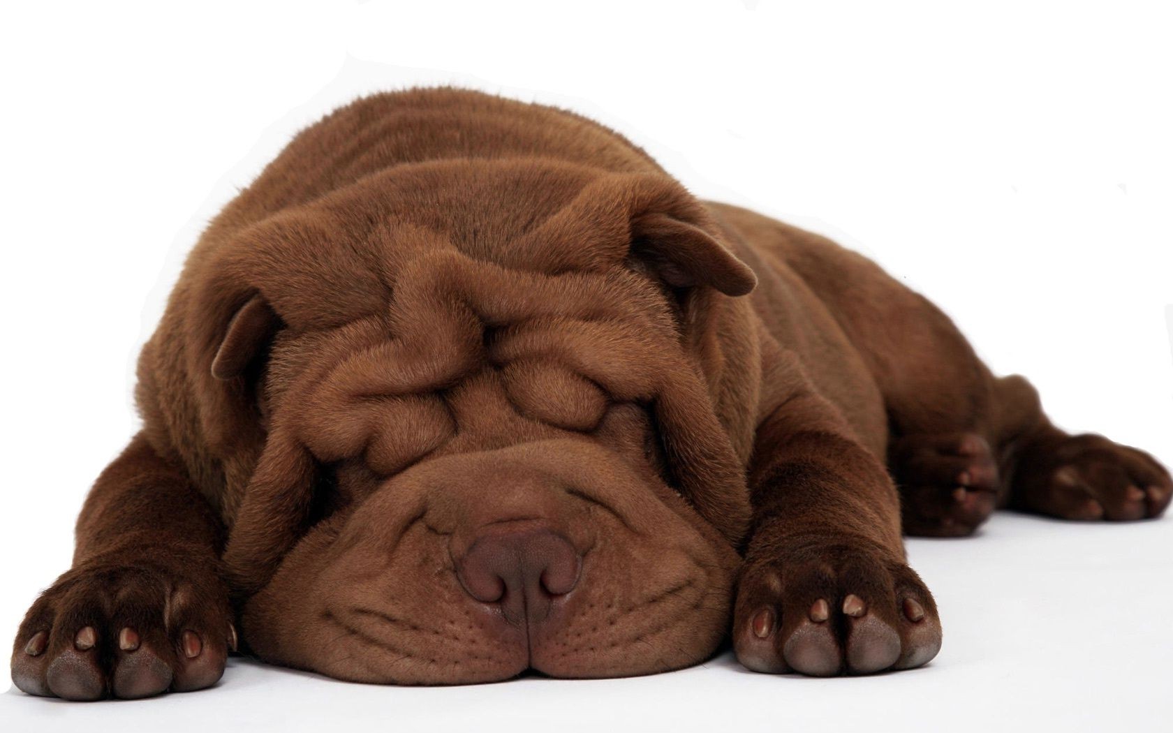 Perro de raza Shar Pei, color marrón lindo durmiendo
