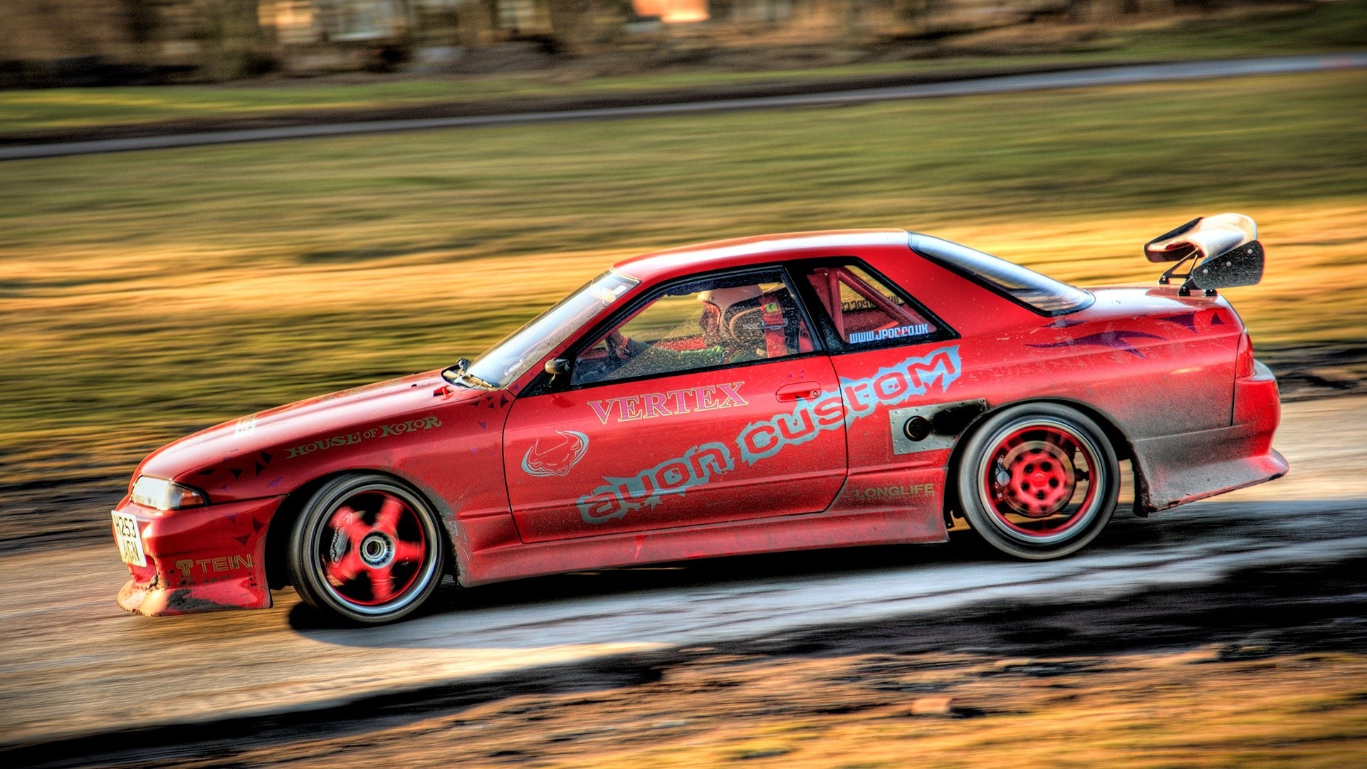 Coche deportivo rojo en una carretera estrecha y sinuosa