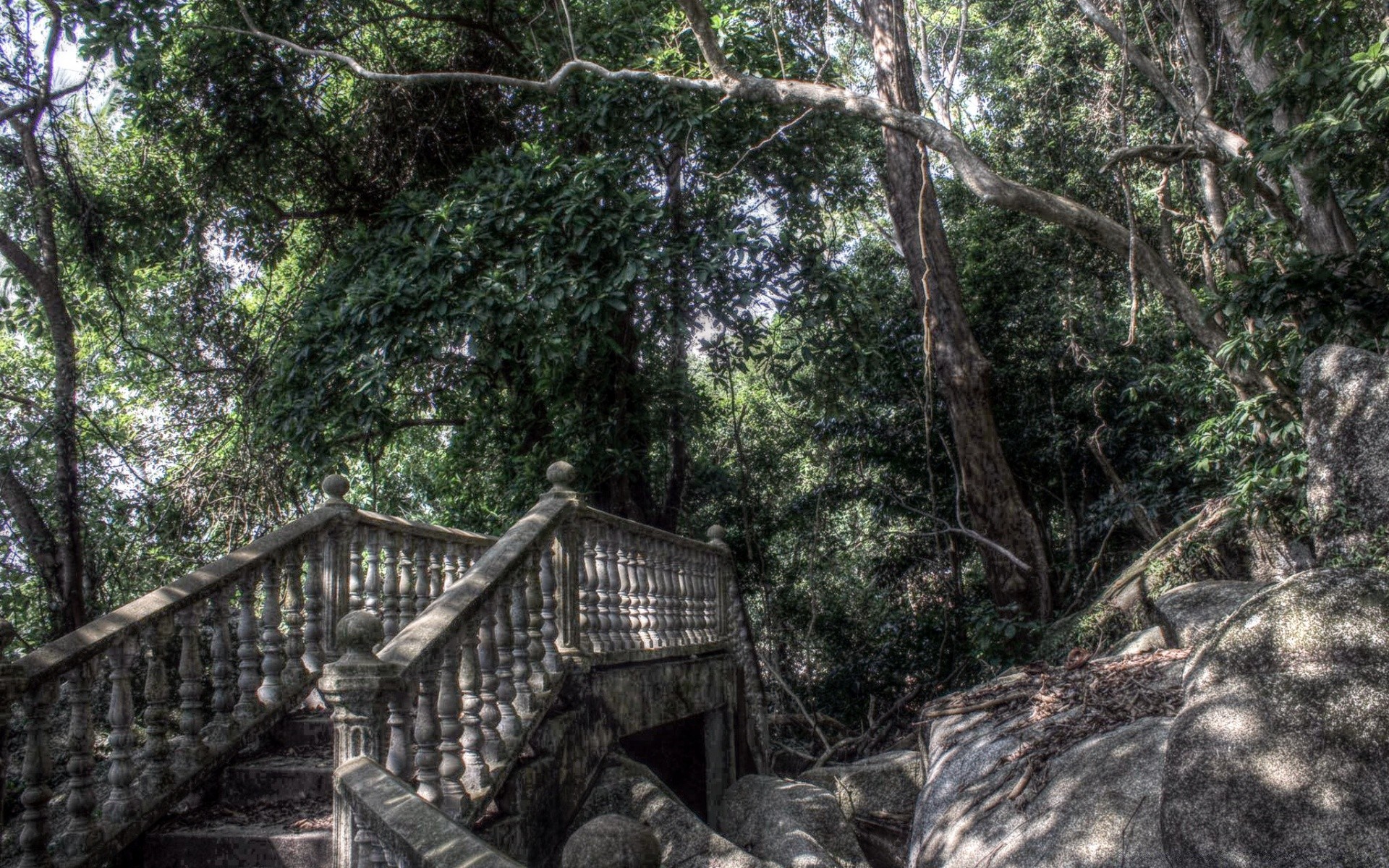Amplia escalera dentro del edificio con una hermosa arquitectura en cálidos tonos amarillos