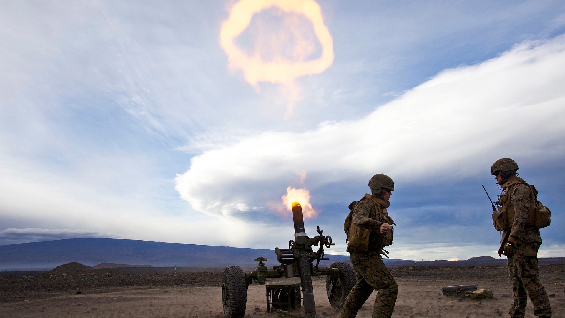 Soldados estadounidenses aprenden a disparar en un campo de entrenamiento en el desiertoSoldados estadounidenses aprenden a disparar en un campo de entrenamiento en el desierto