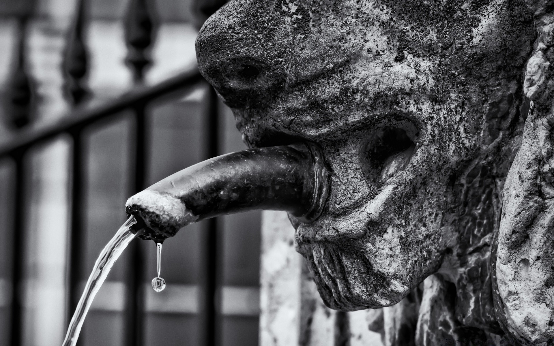 Escultura de perro y grifo de agua