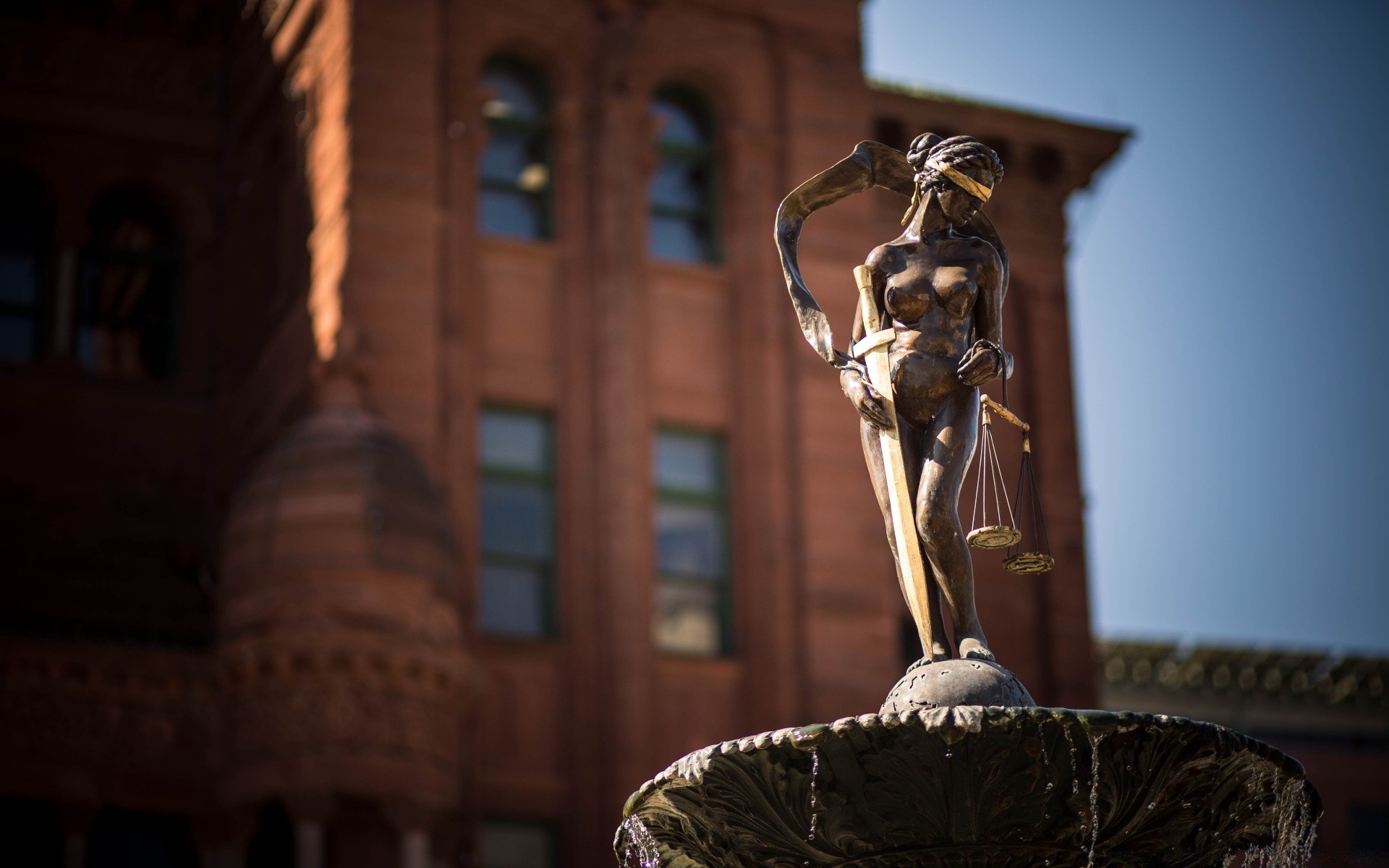 Escultura de la justicia en el fondo del edificio