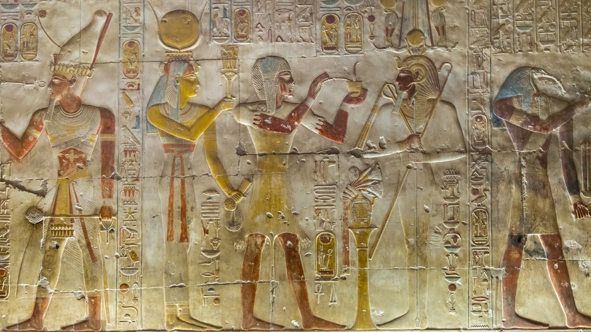 Murales egipcios en la pared de la pirámide