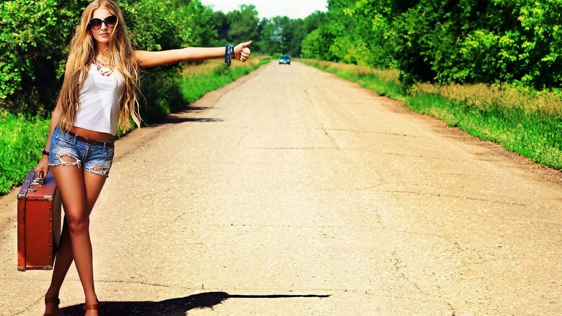 Niña en vestido y chaqueta de mezclilla acaricia un perrito peludo