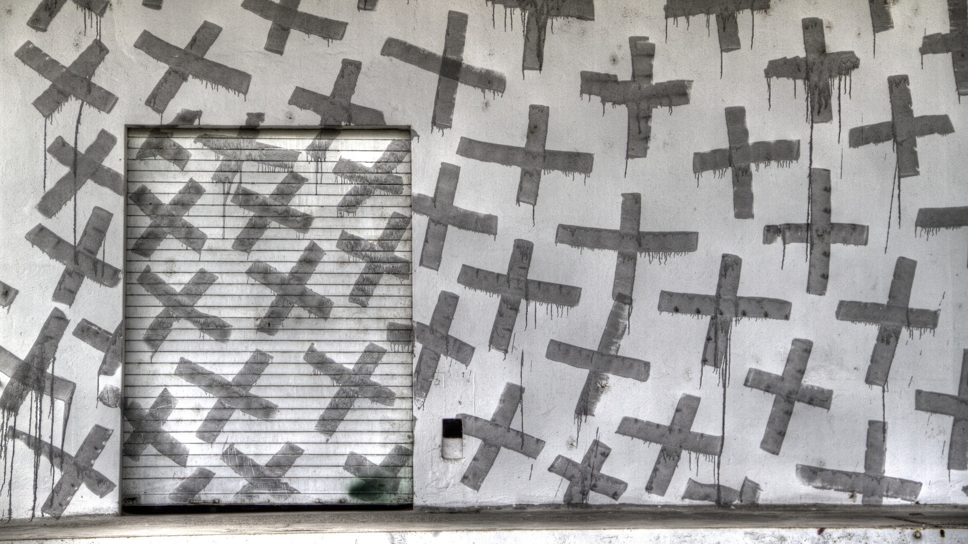 Hombre con máscara de gas se encuentra en un edificio abandonado