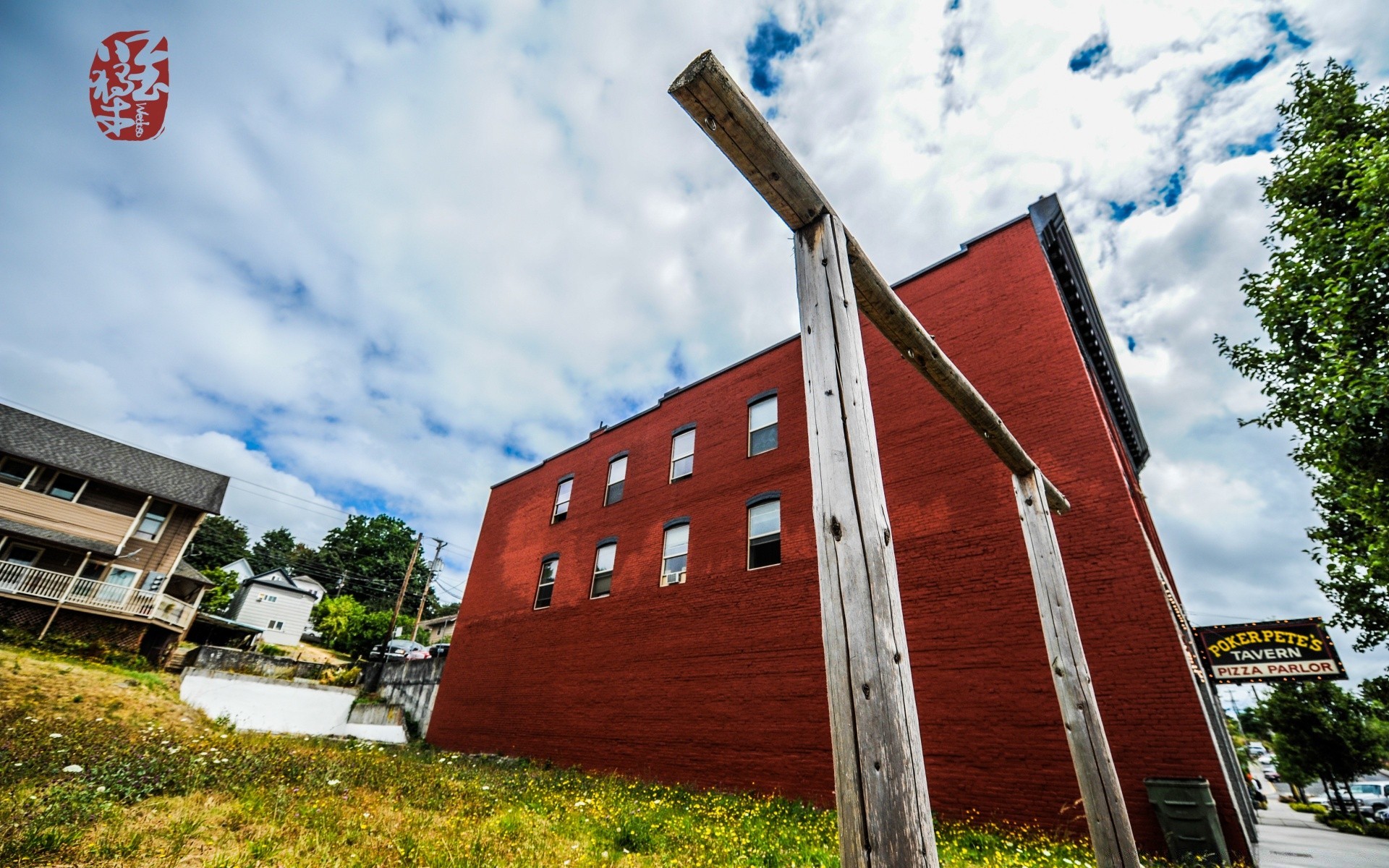 Casa roja en la naturaleza en el estilo de minimalismoCasa roja en la naturaleza en el estilo de minimalismo