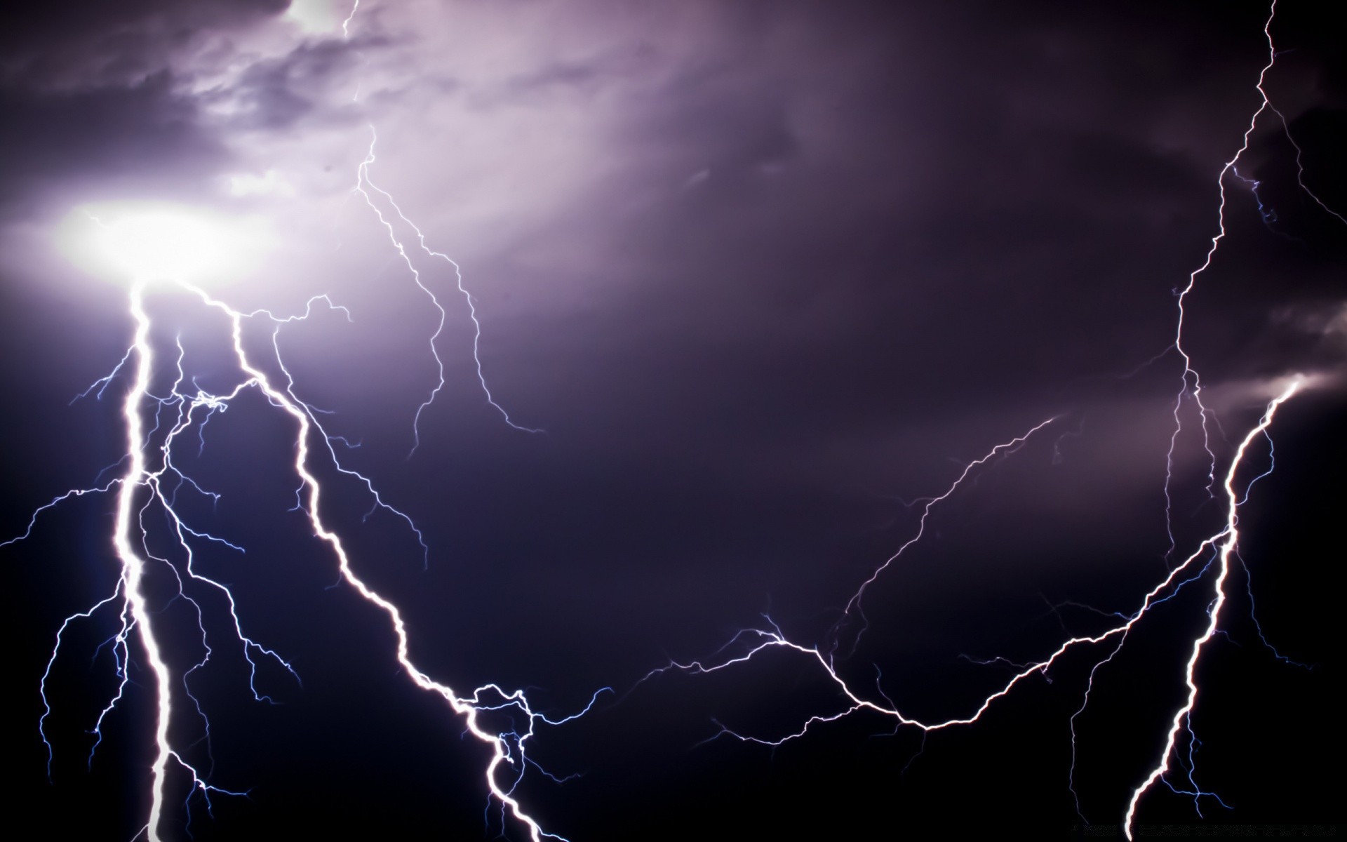 La tormenta pinta el paisaje con un rayo en el cielo nocturno