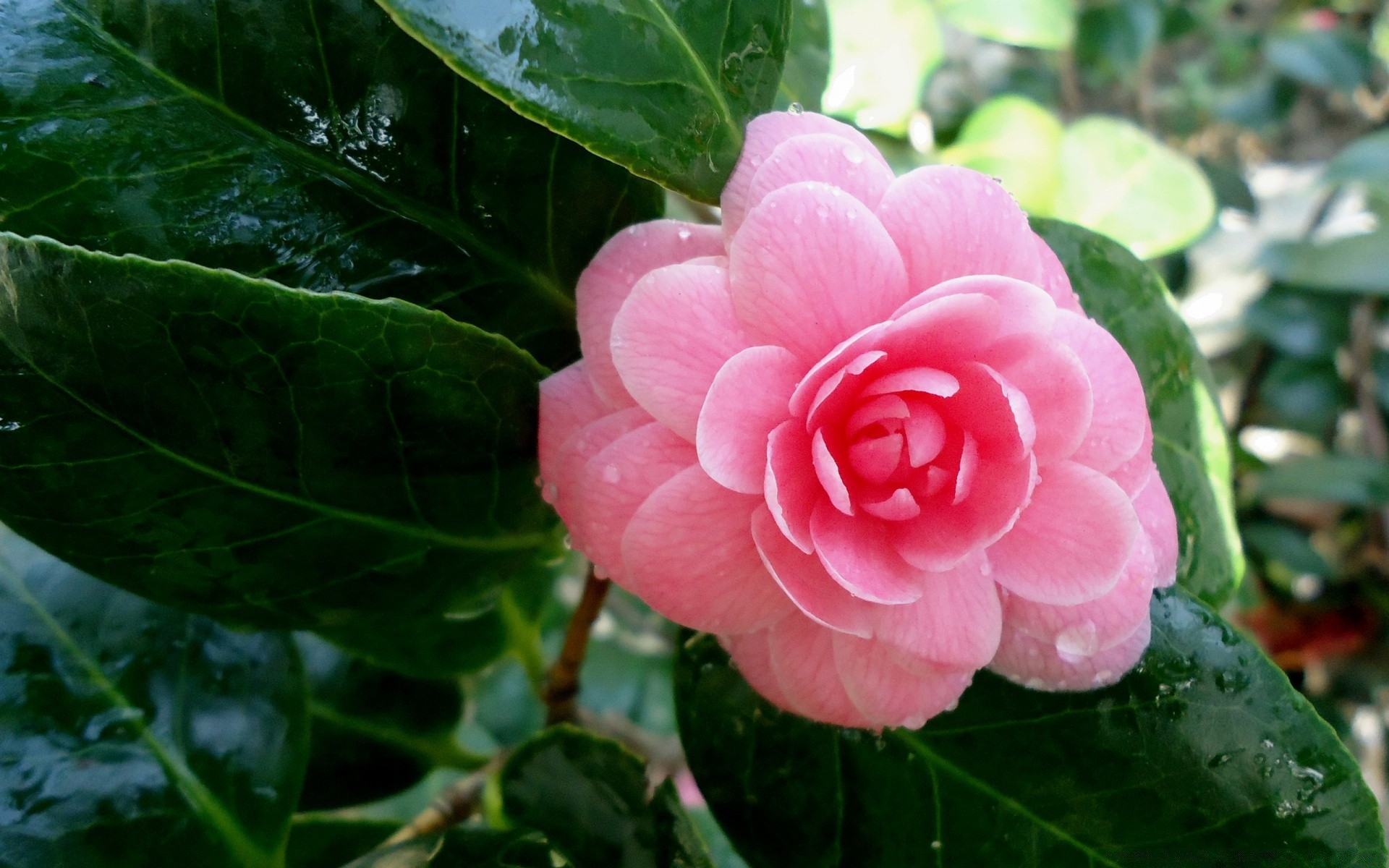 Flor rosa con hojas grandes