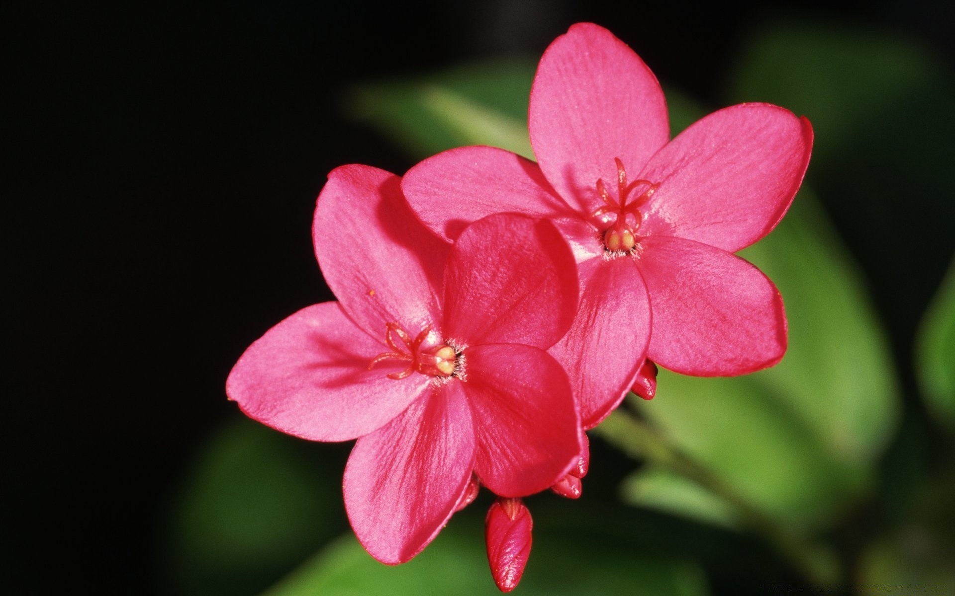 Flores rojas contra el follaje verde