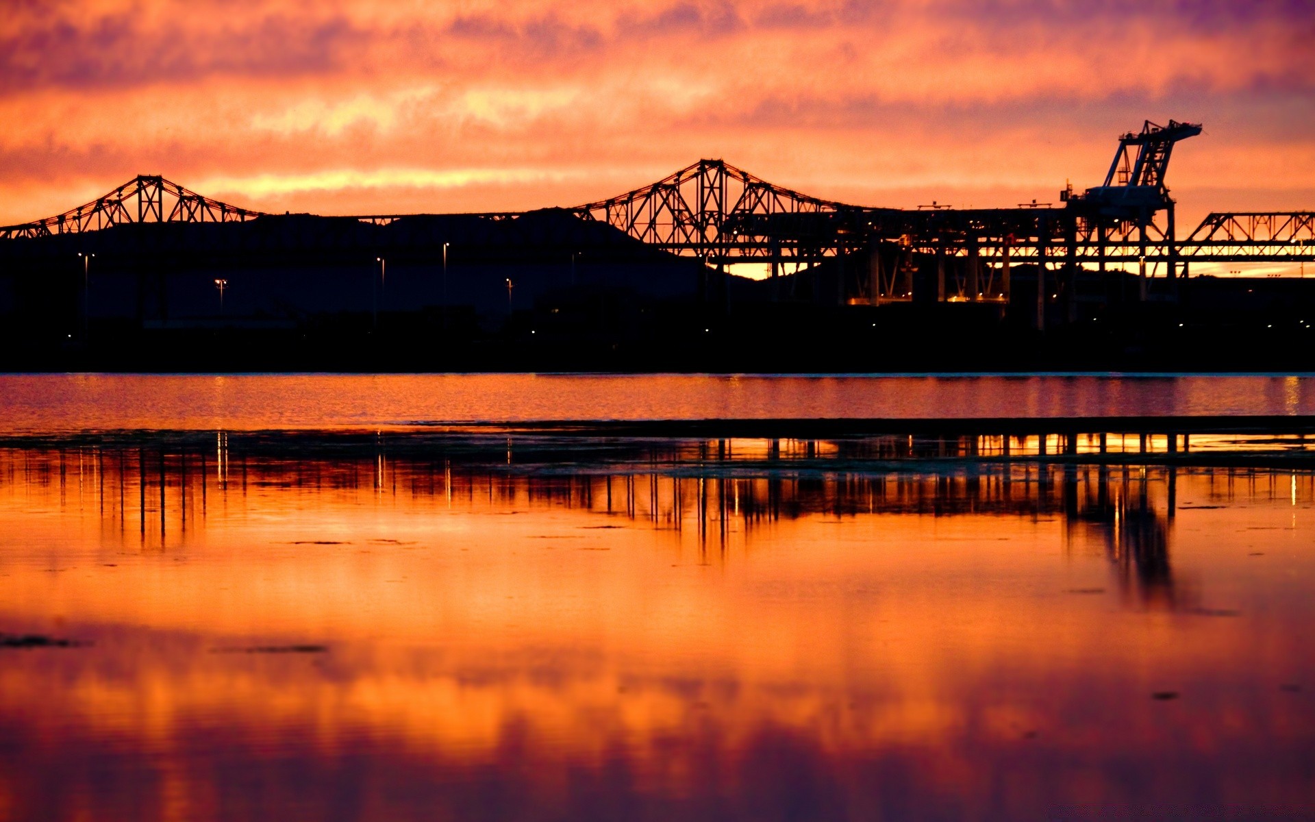 Puesta de sol roja reflejada en el agua