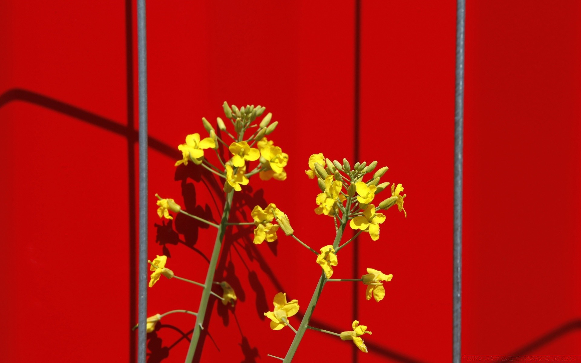 Flores amarillas sobre fondo rojo