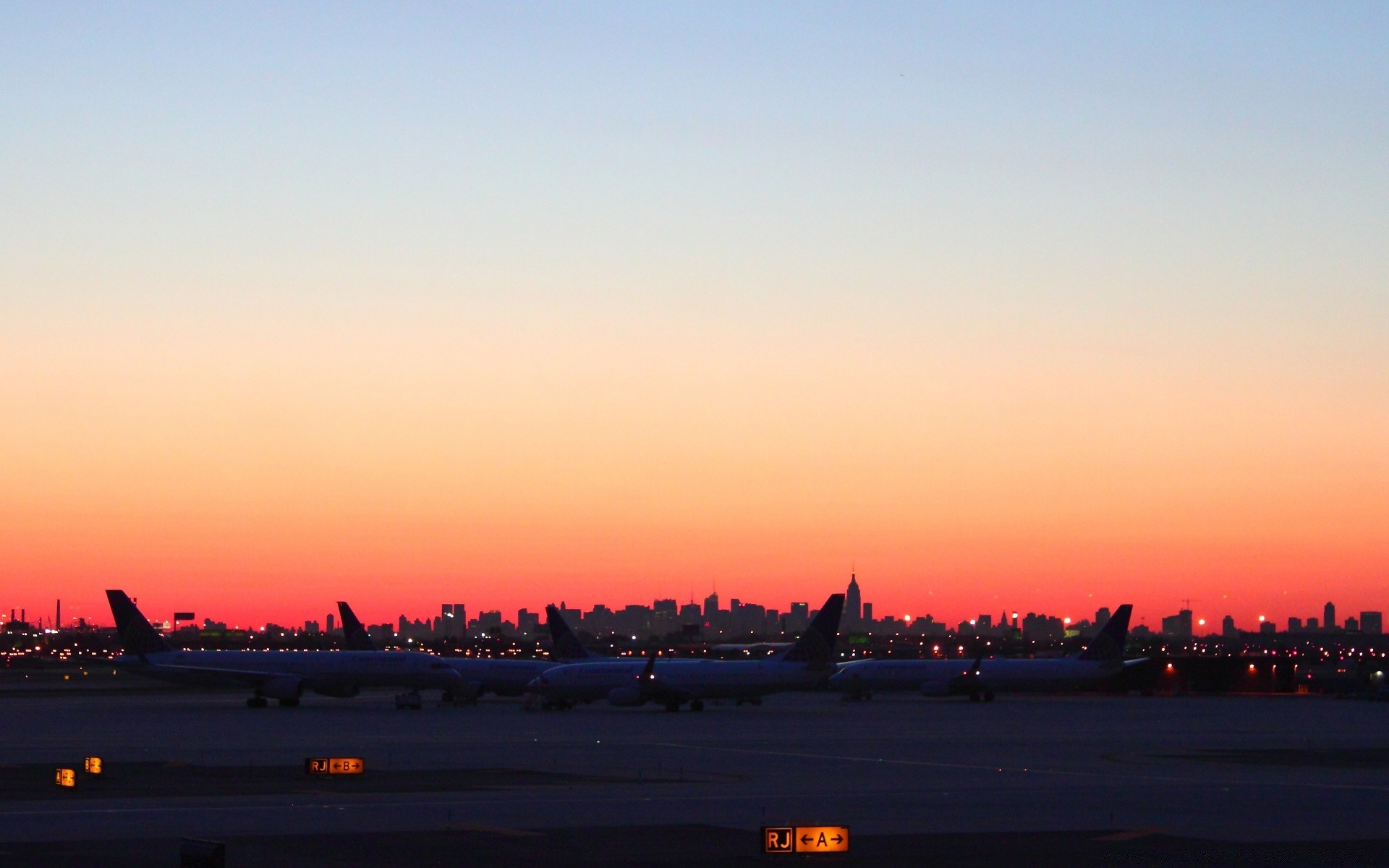 Puesta de sol en el mar con el telón de fondo de la playa y el puente