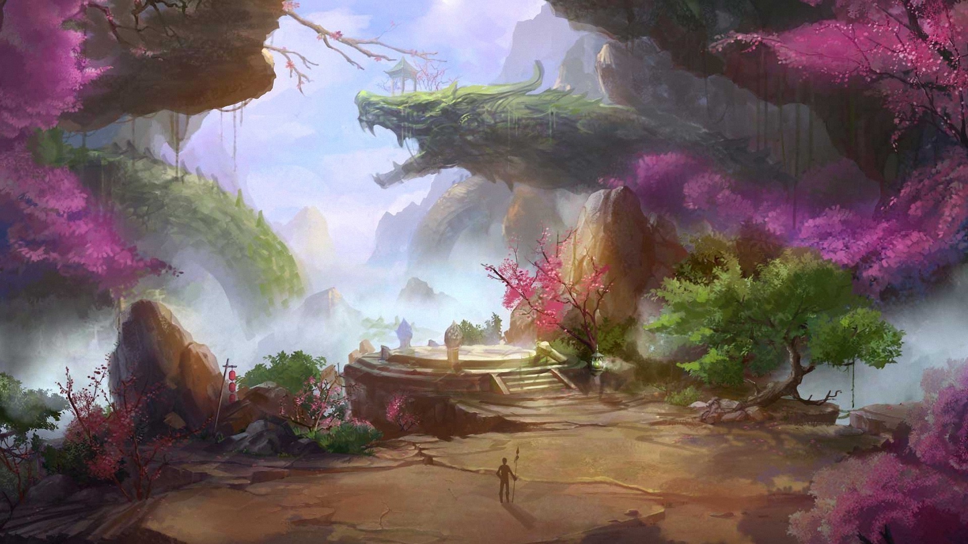 Hermoso dragón en el fondo de la naturaleza
