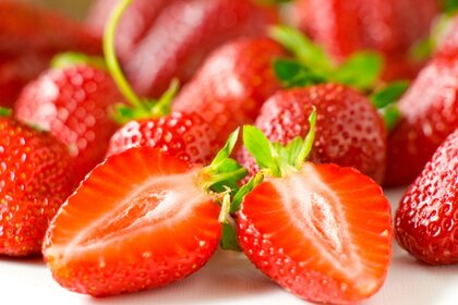 Fresa jugosa en corte sobre el fondo de las bayas