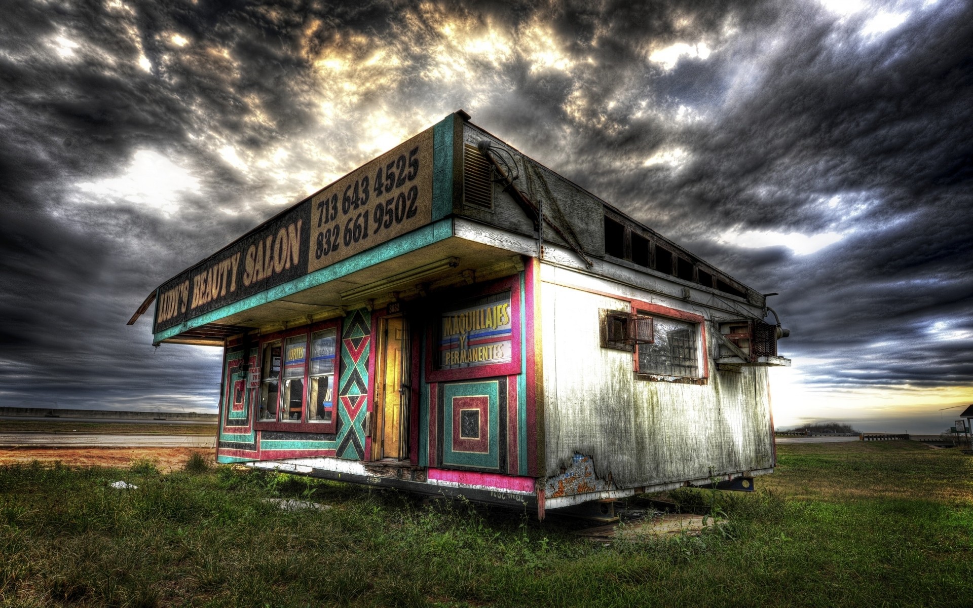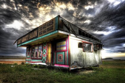 Puesto multicolor en el fondo del cielo sombrío