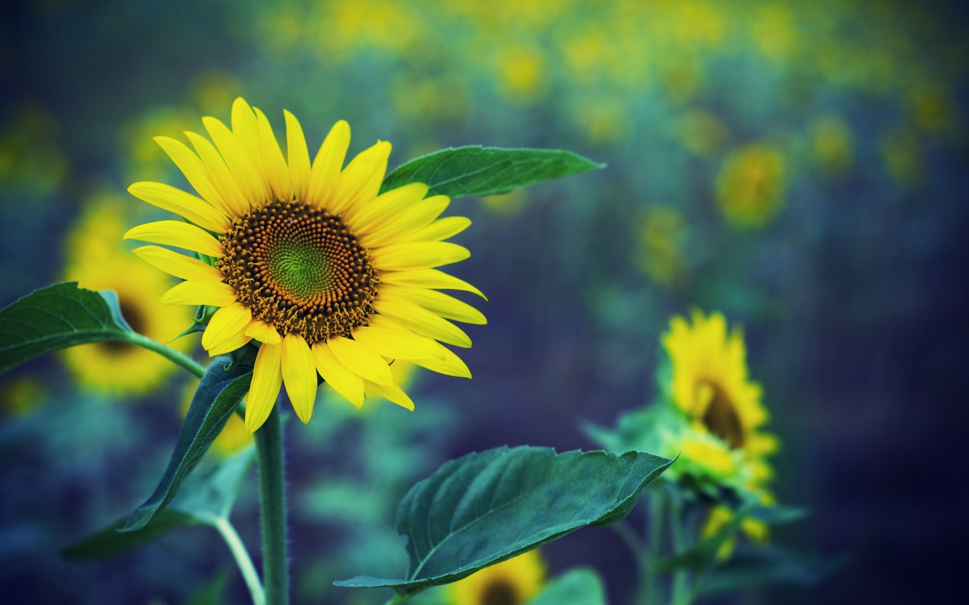 Girasol amarillo sobre fondo verde