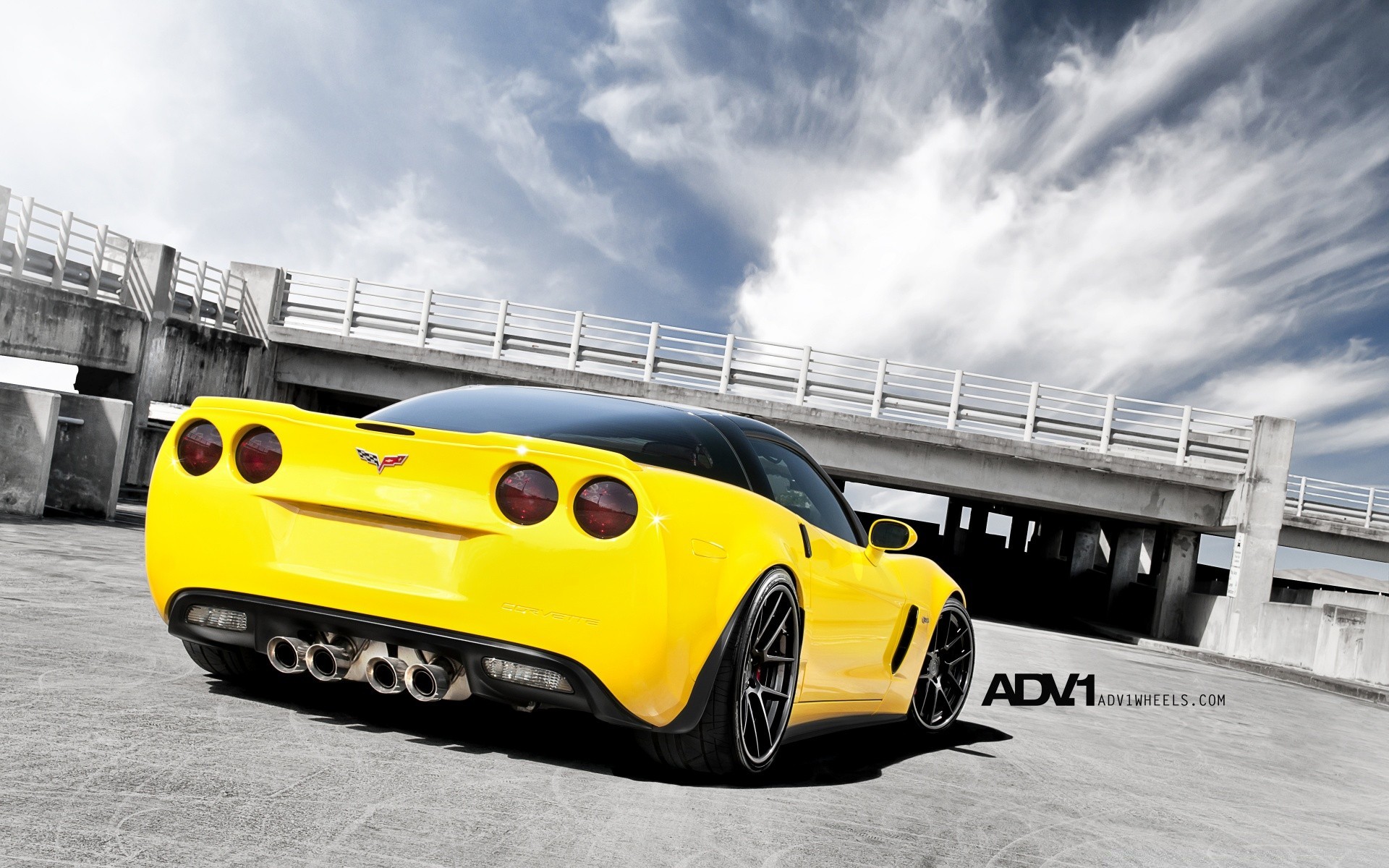 Coche amarillo en el puente