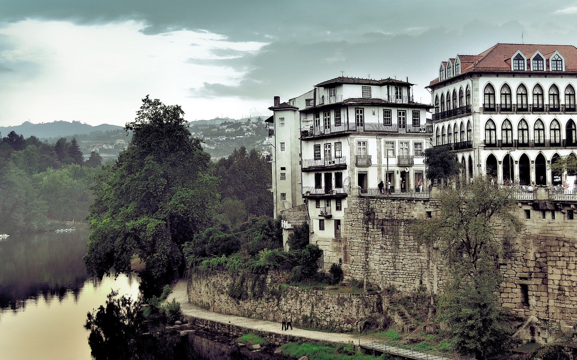 Castillo junto al río en un maravilloso bosque