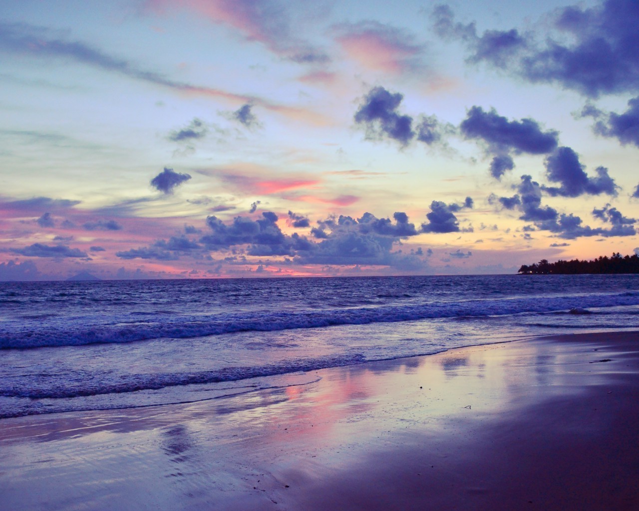 Foto de una puesta de sol en el mar desde la orilla de la playa