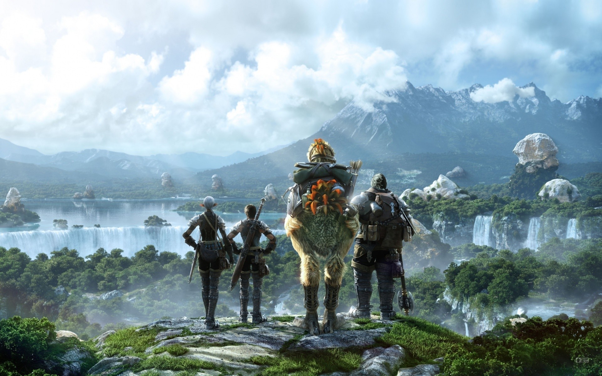 Viajes frente a un hermoso paisaje de cascadas de montañaViajes frente a un hermoso paisaje de cascadas de montaña