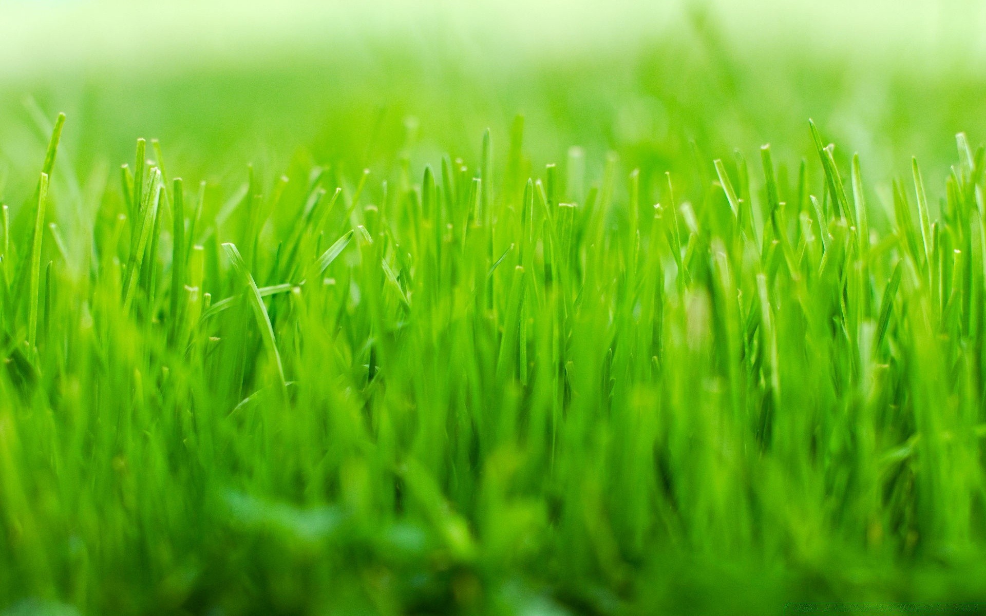 Macro fotografía de hierba en un Prado verde salpicado de gotas de rocío