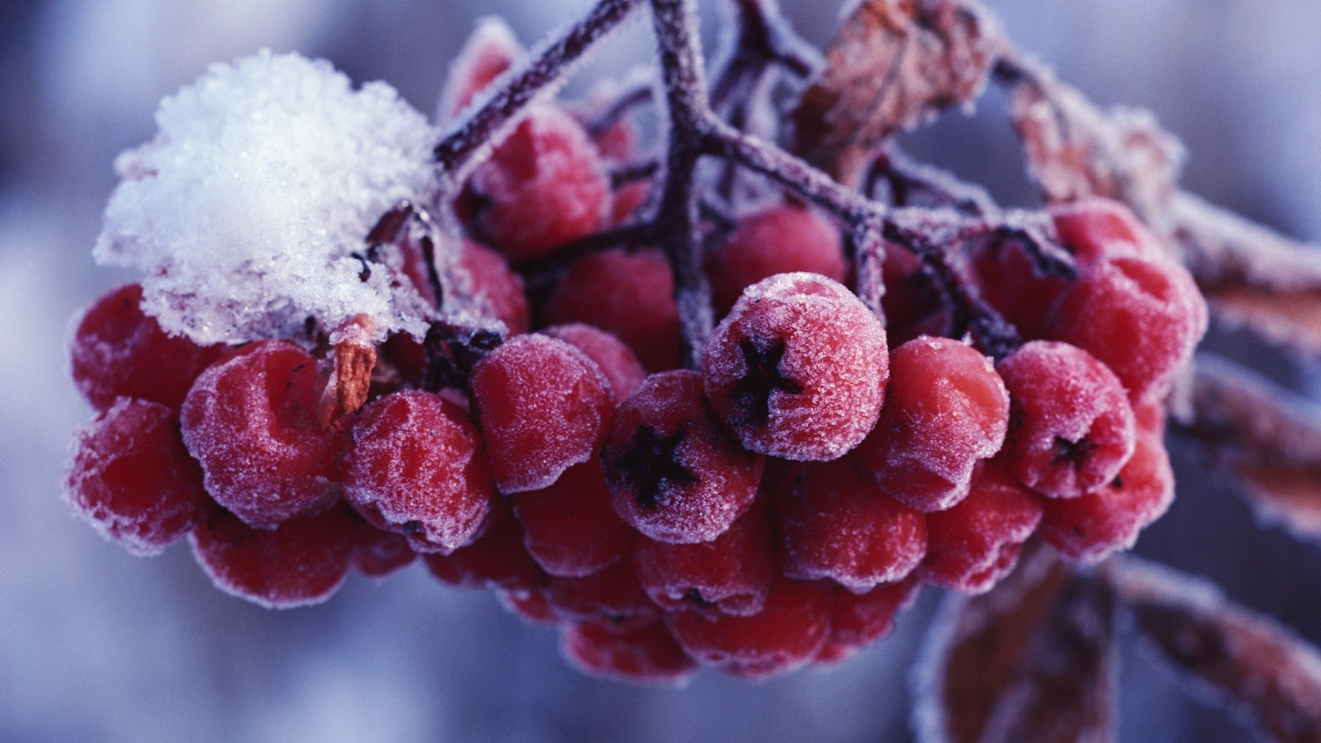 Los frutos de la fruta colgando en las ramas contra el cielo