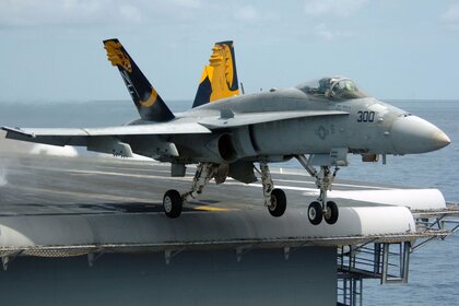 Salida de un caza de la franja en un portaaviones