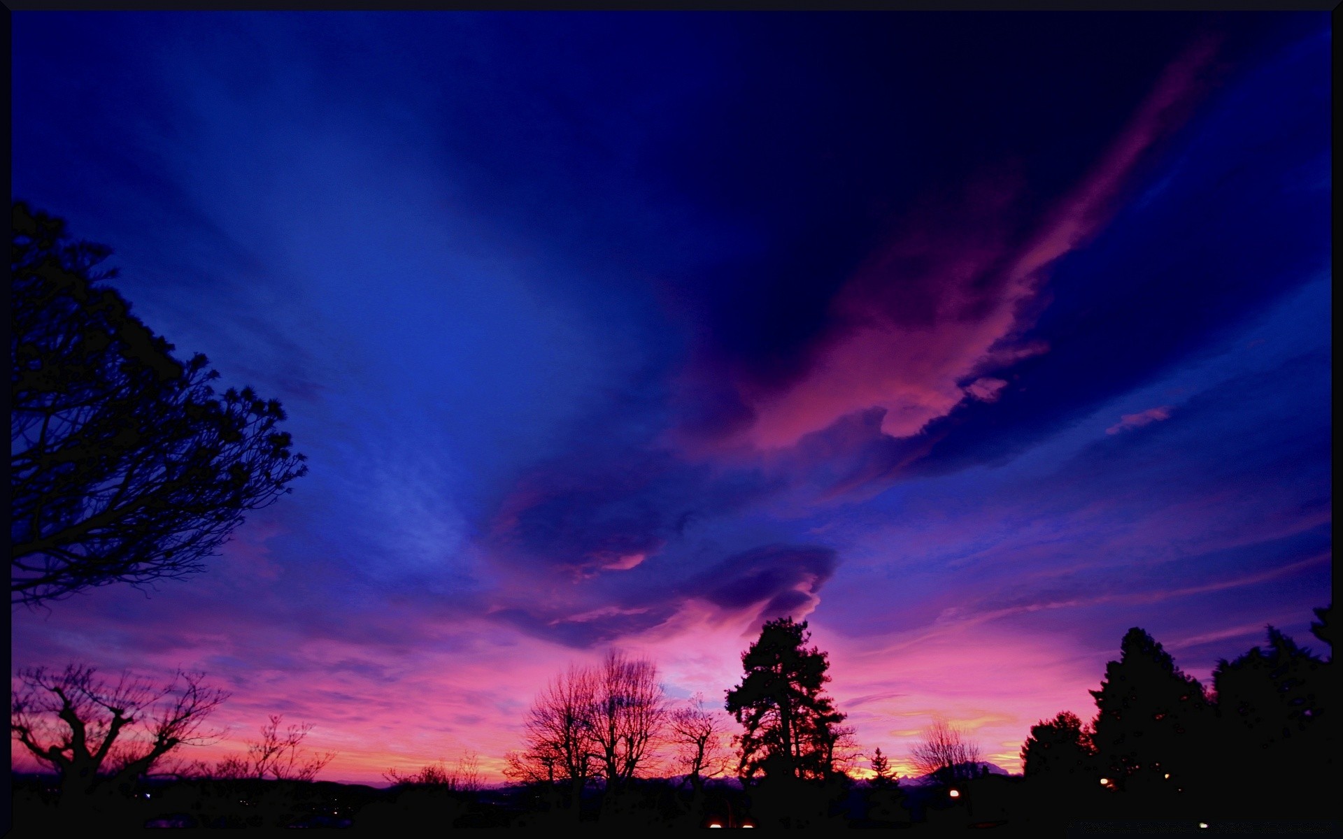 Puesta de sol vespertina. Cielo oscuro en el agua