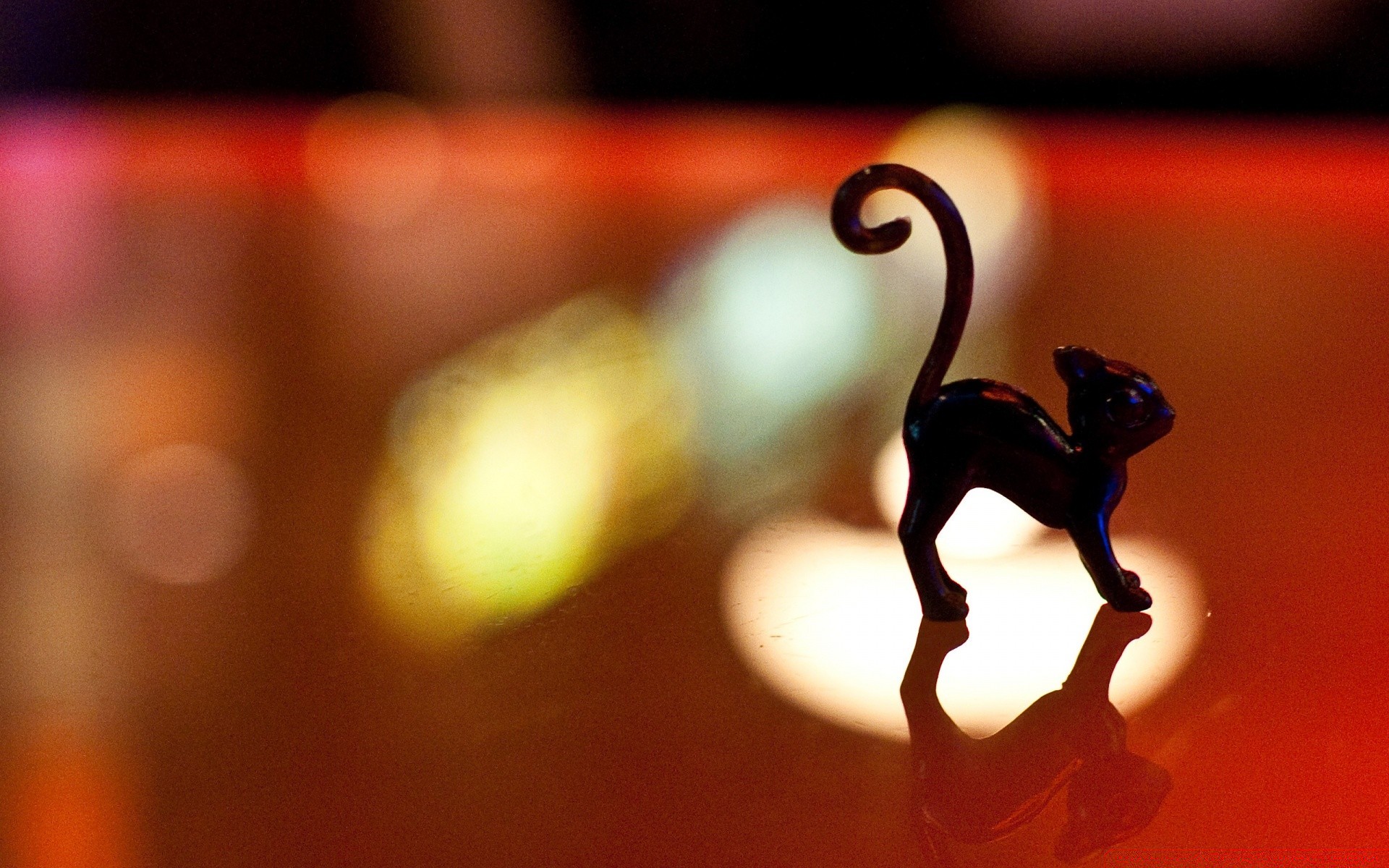 Gato negro pintado sobre fondo rojo