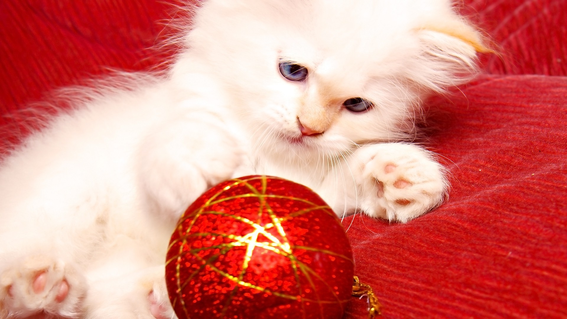 Delicado gato con decoración de árbol de Navidad