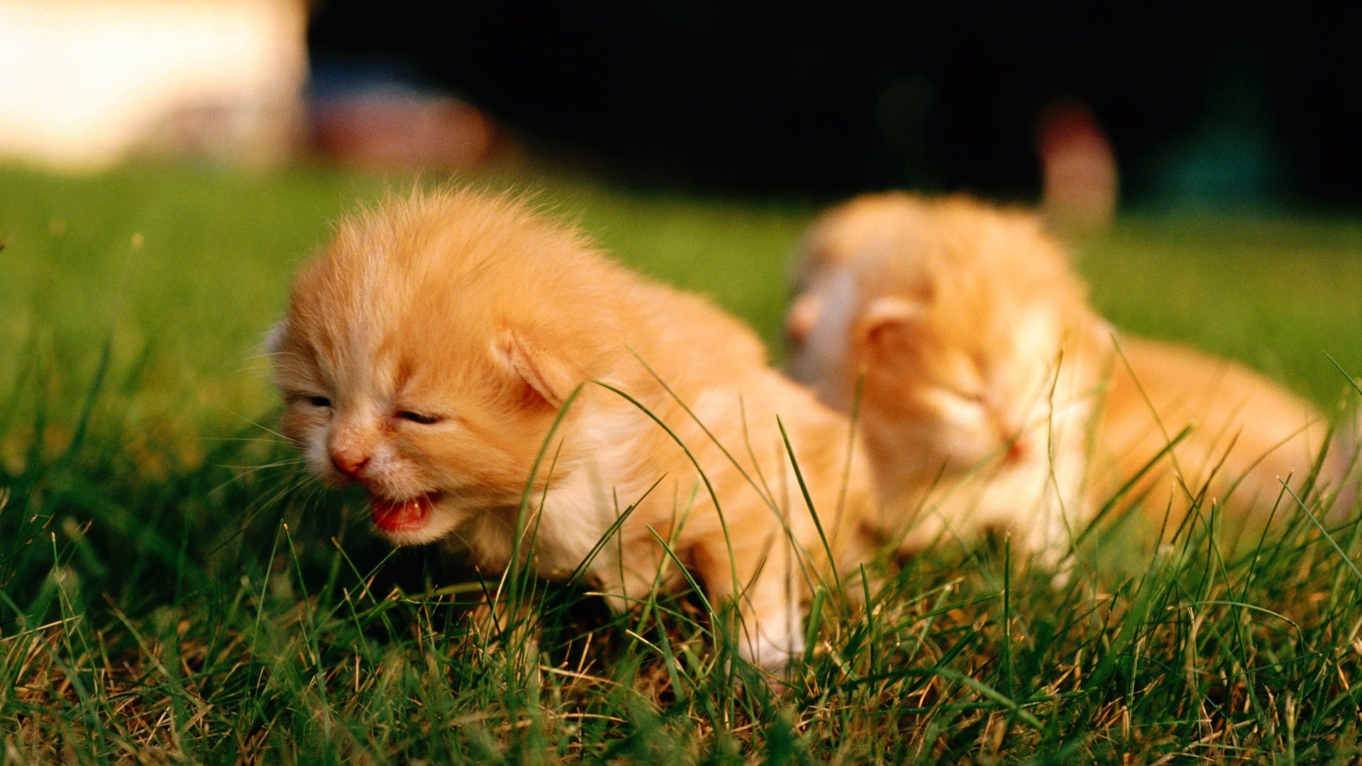 Pequeños gatitos pelirrojos en la hierba