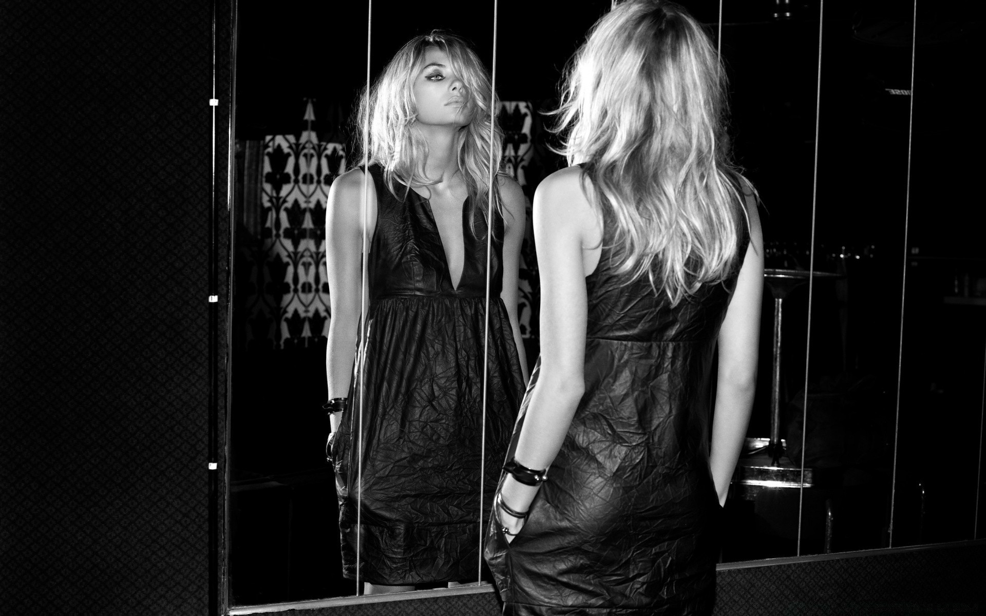 Rubia modelo Mira en el espejo