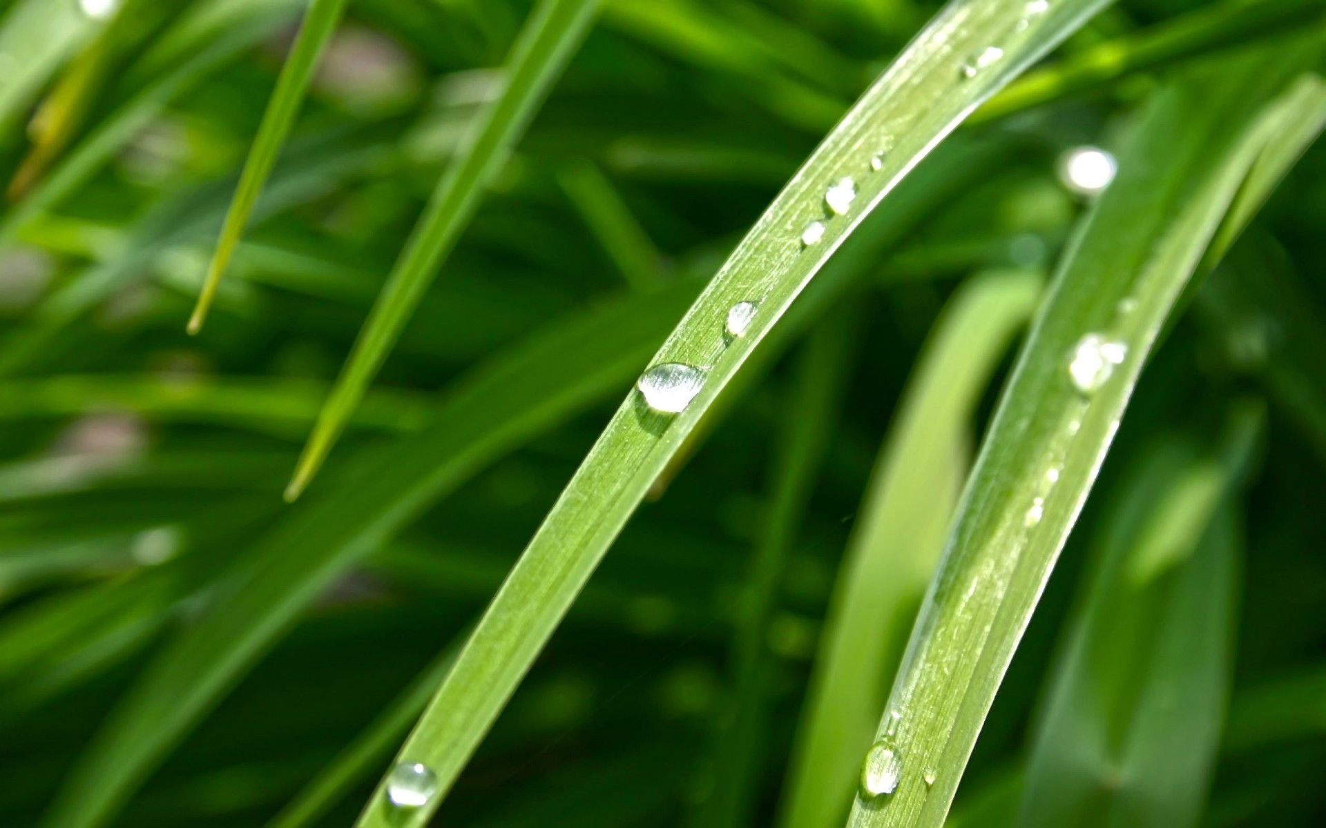 Gotas de agua rodantes sobre hojas grandes y brillantes