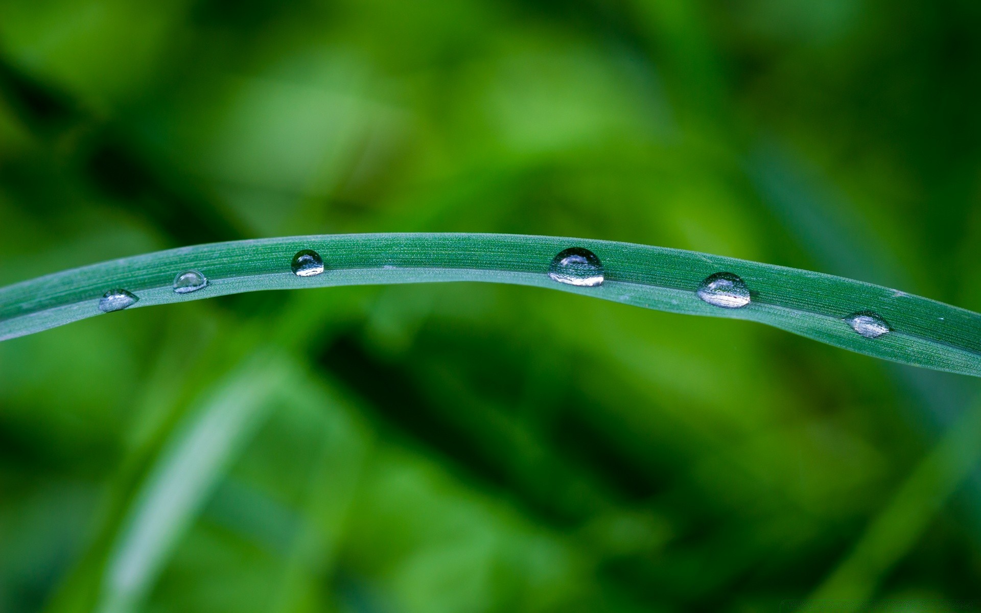 Hoja de hierba verde con gotas de rocío