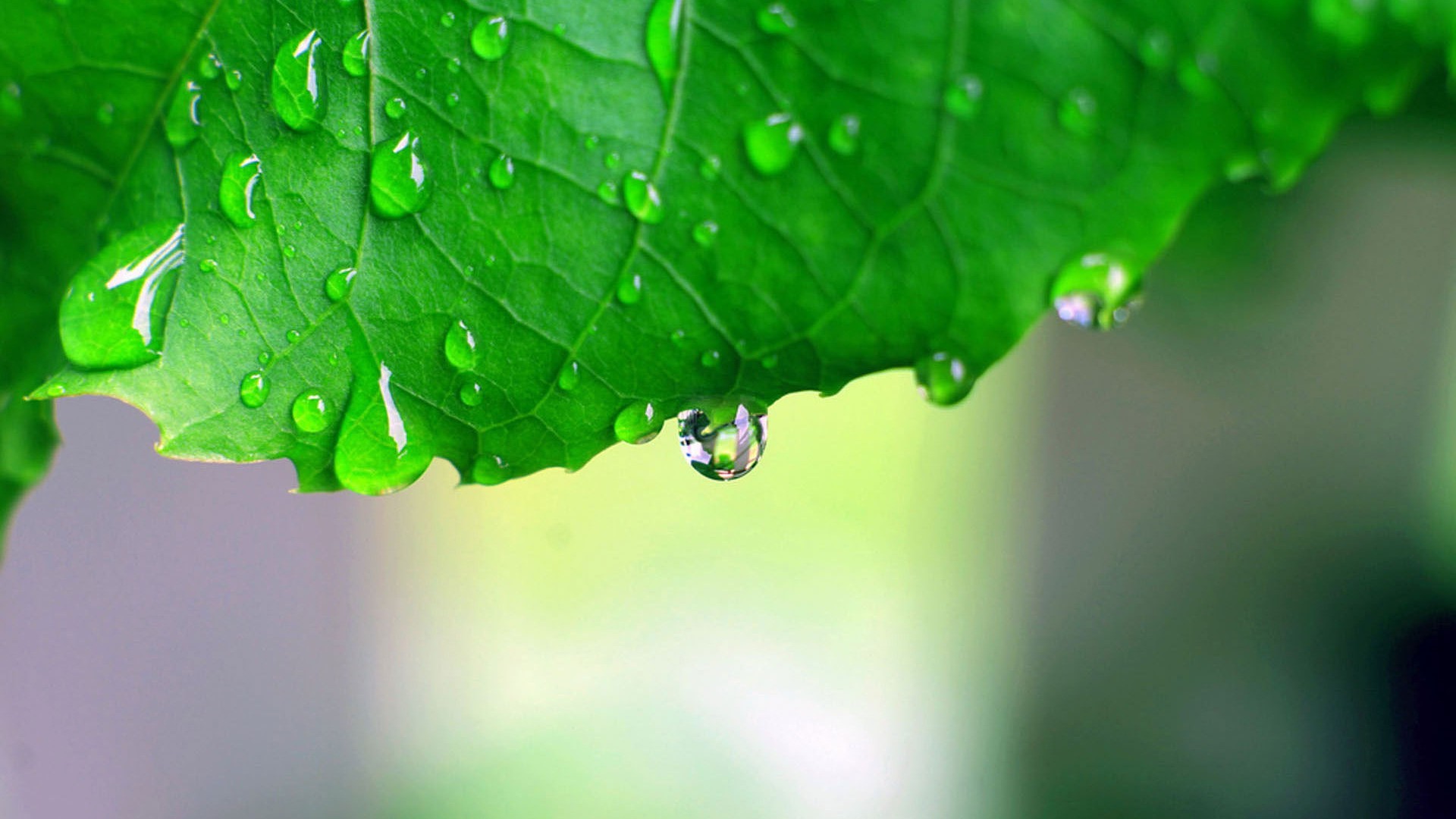 Gotas de agua brillantes sobre la hierba en tonos grises sobre un fondo borroso en