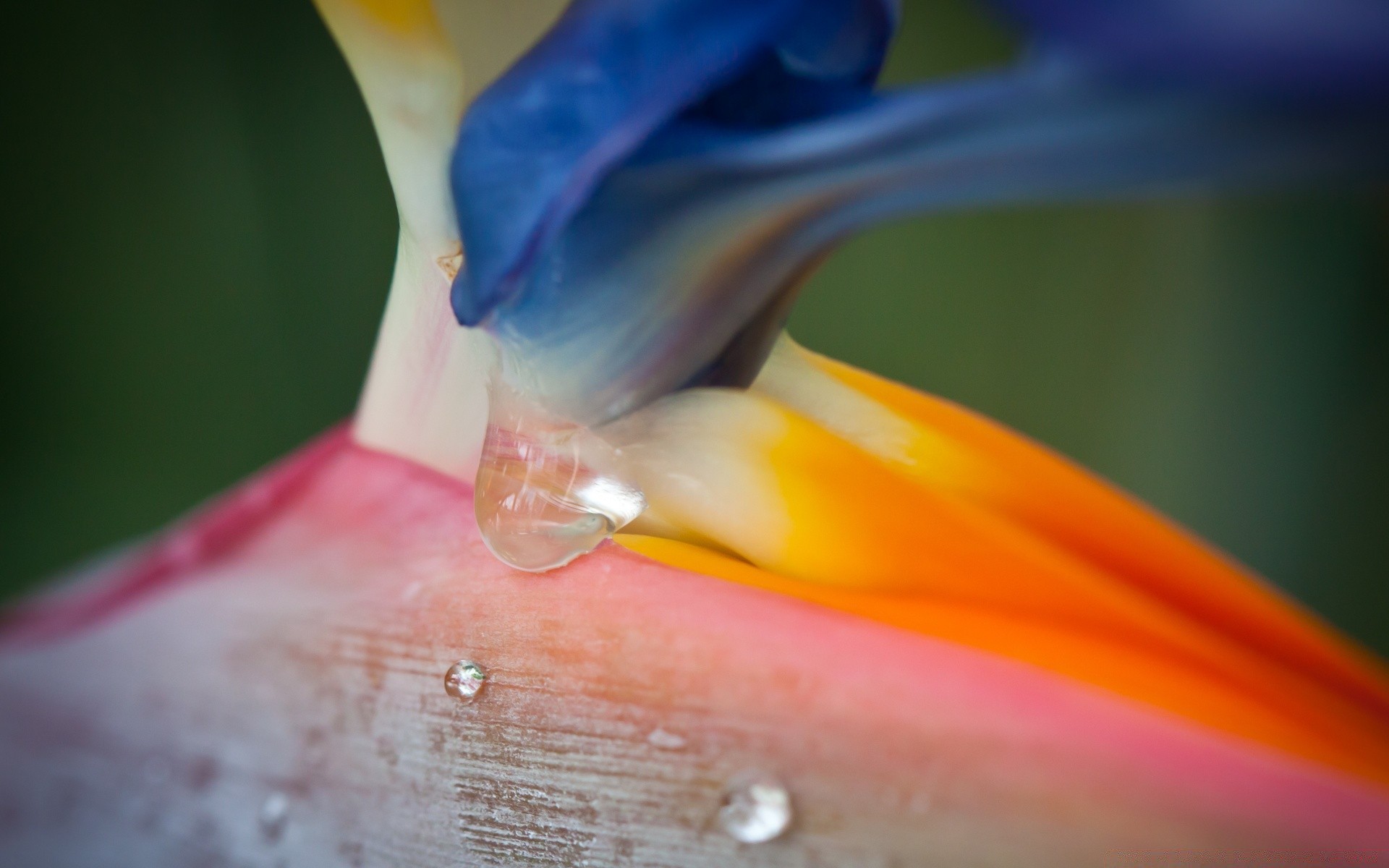 Fotografía macro de lirios con gotas de lluvia en los tallos