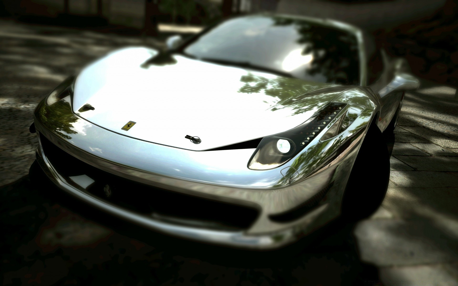 Coche deportivo pulido en el fondo de la calle de la ciudad