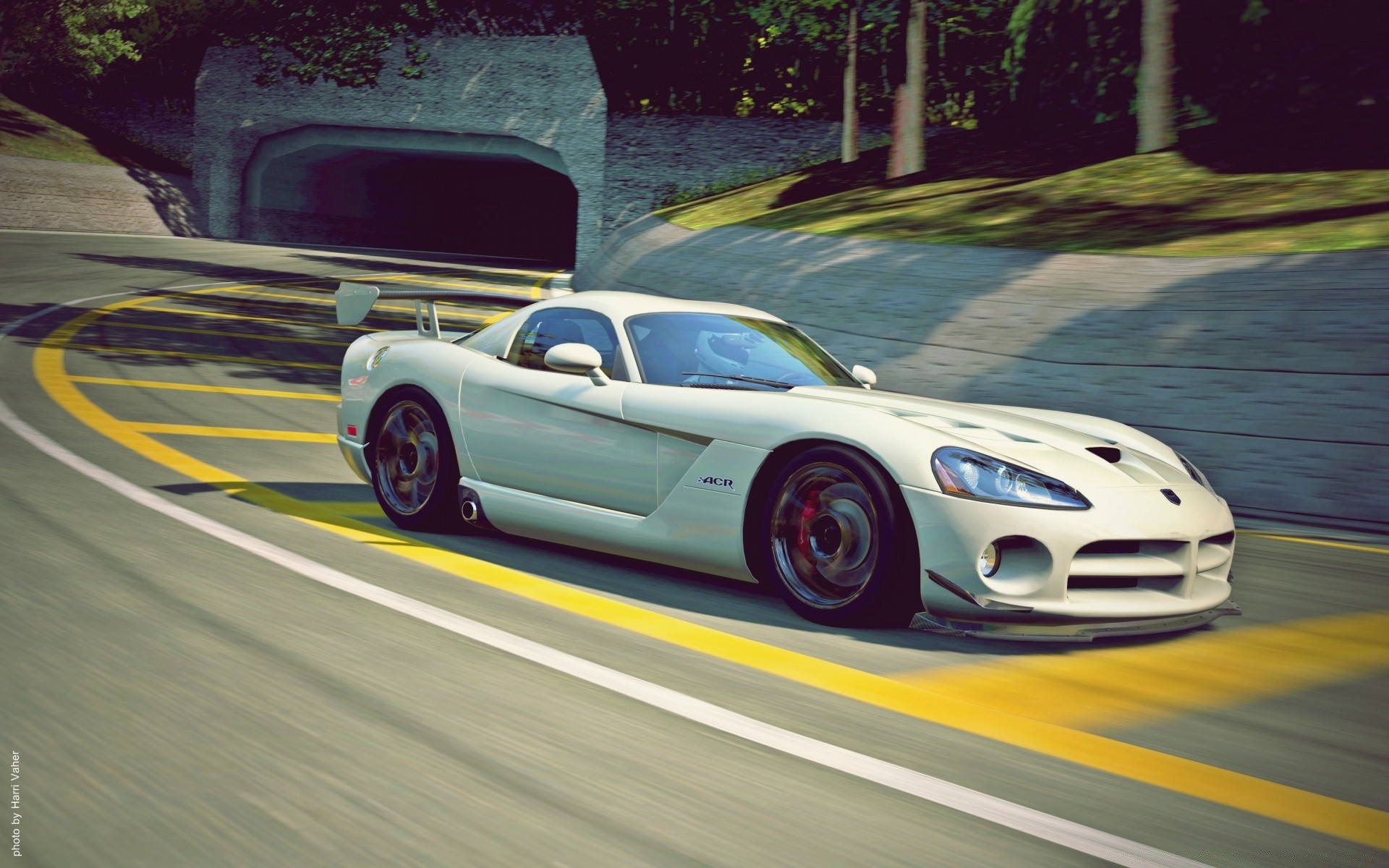 Un coche blanco sale del túnel