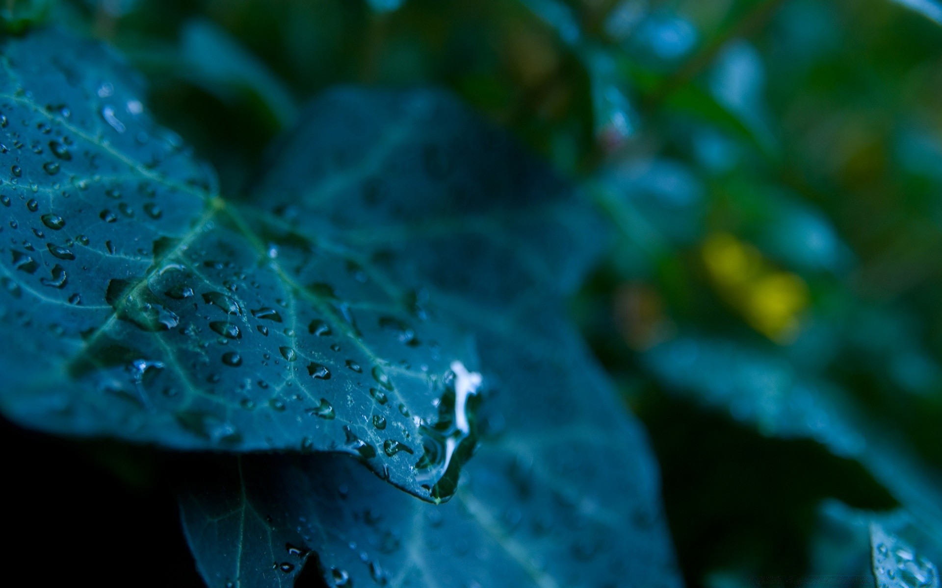 Hojas grandes de color celadón con gotas en ellas